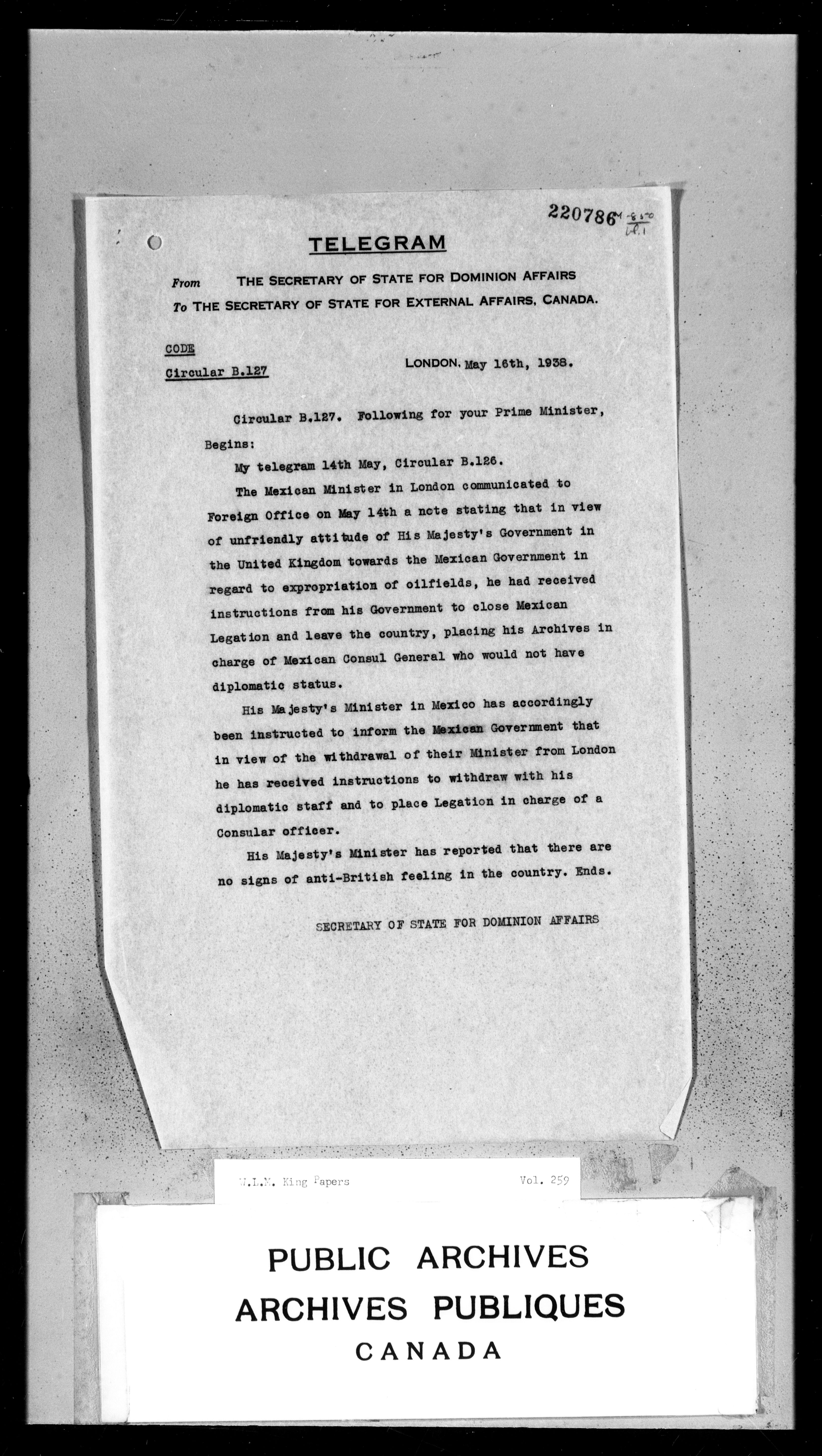 William Lyon Mackenzie King : Primary series correspondence (J1) - 3739