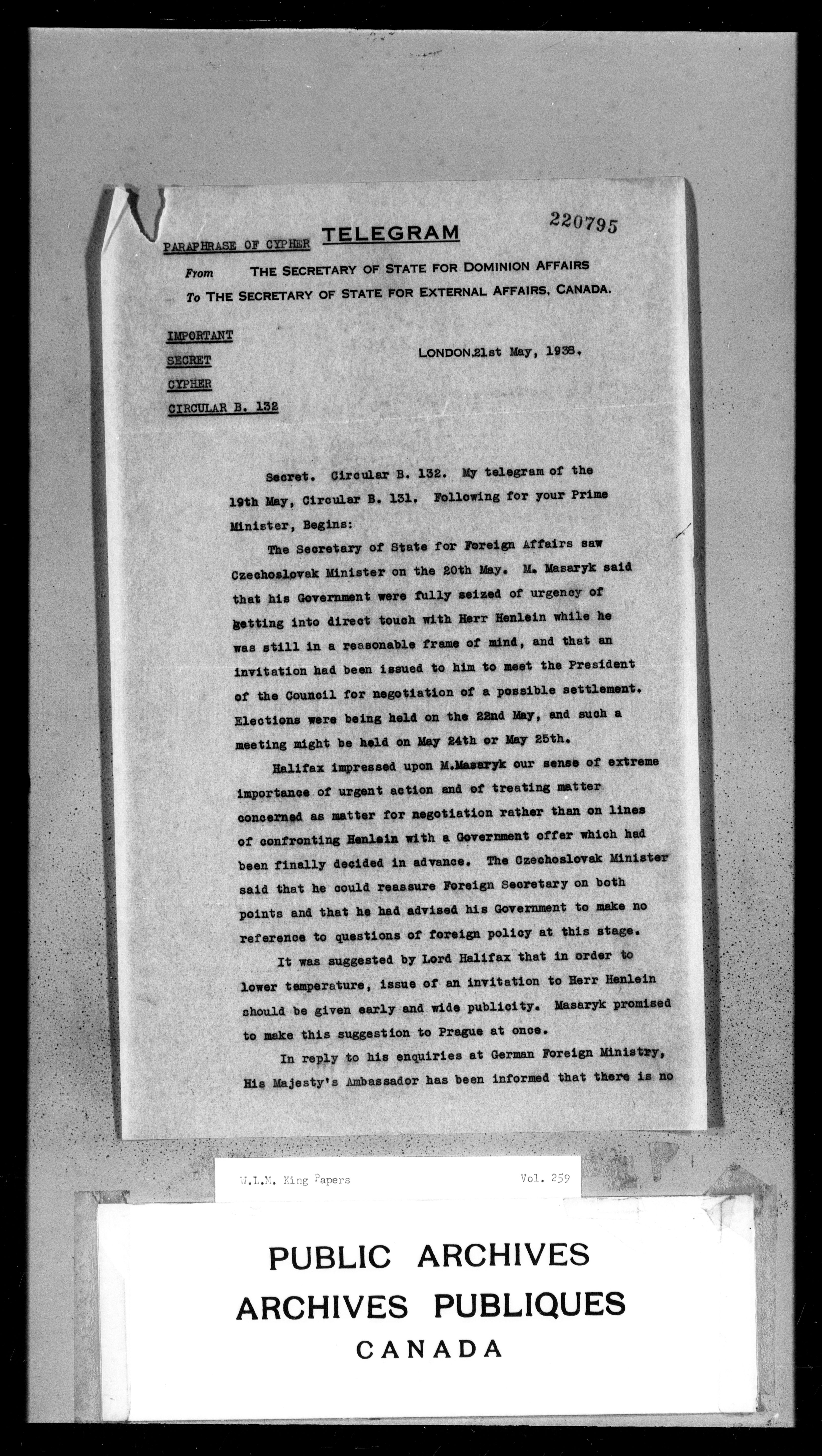 William Lyon Mackenzie King : Primary series correspondence (J1) - 3739