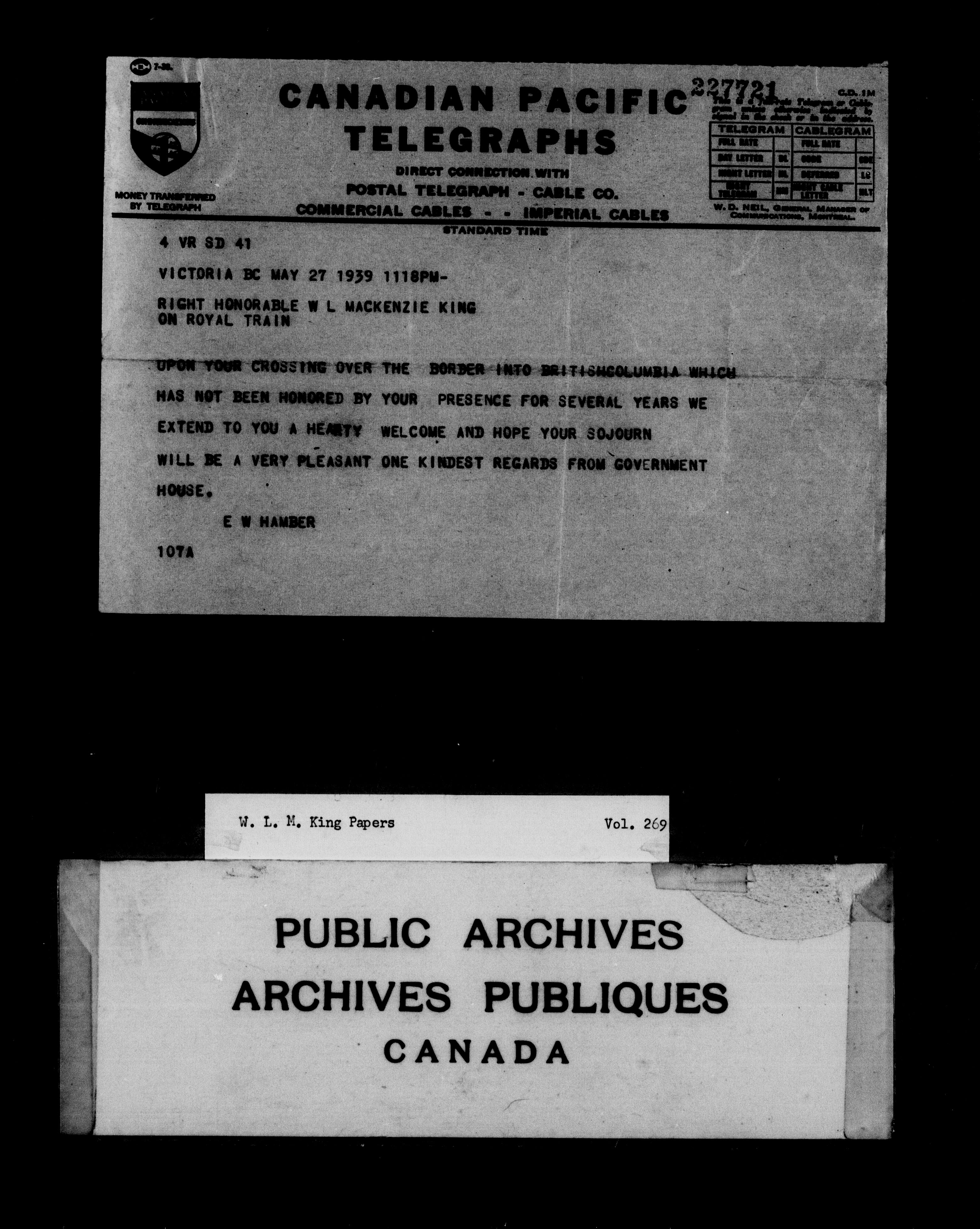 William Lyon Mackenzie King : Primary series correspondence (J1) - 3743