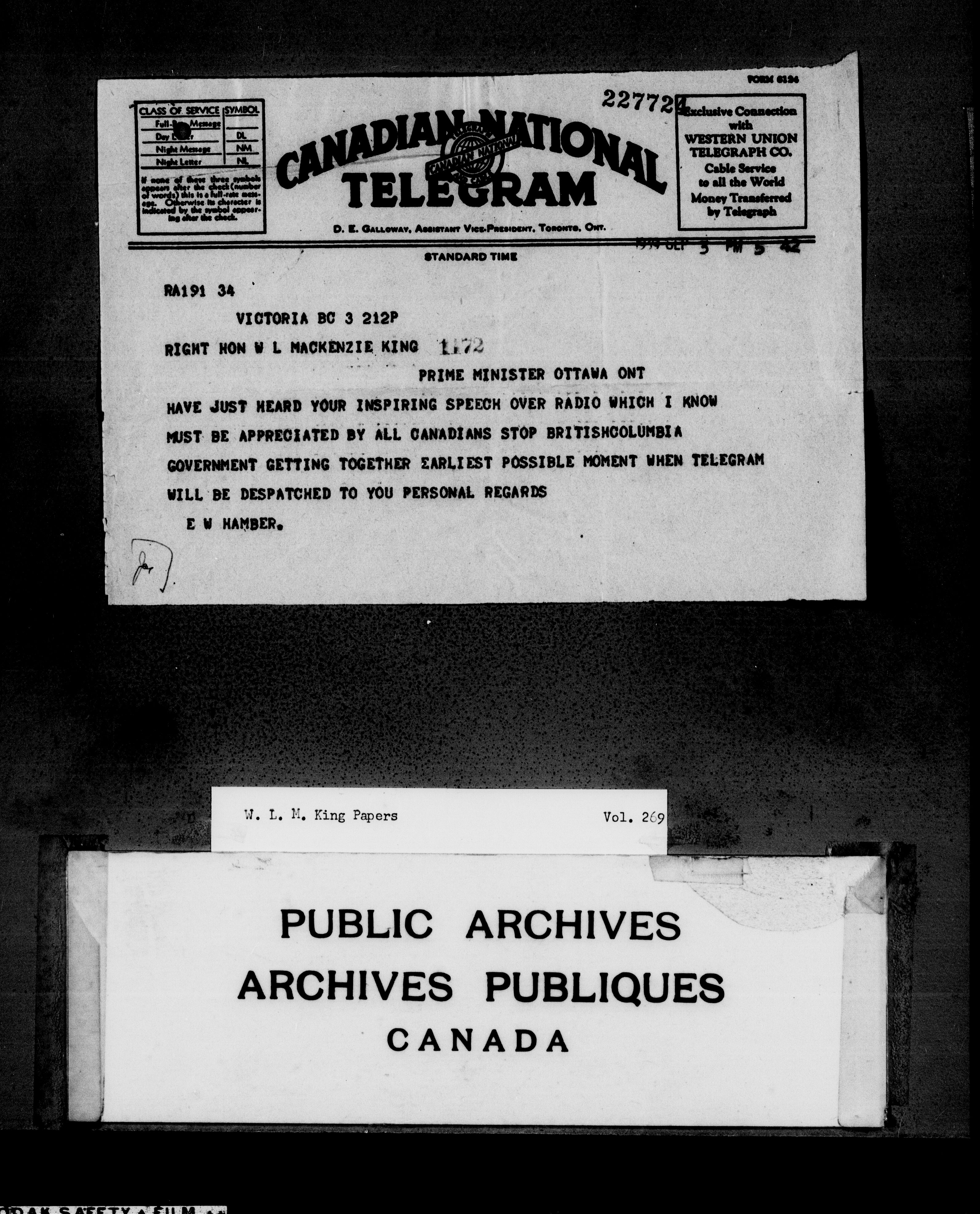 William Lyon Mackenzie King : Primary series correspondence (J1) - 3743