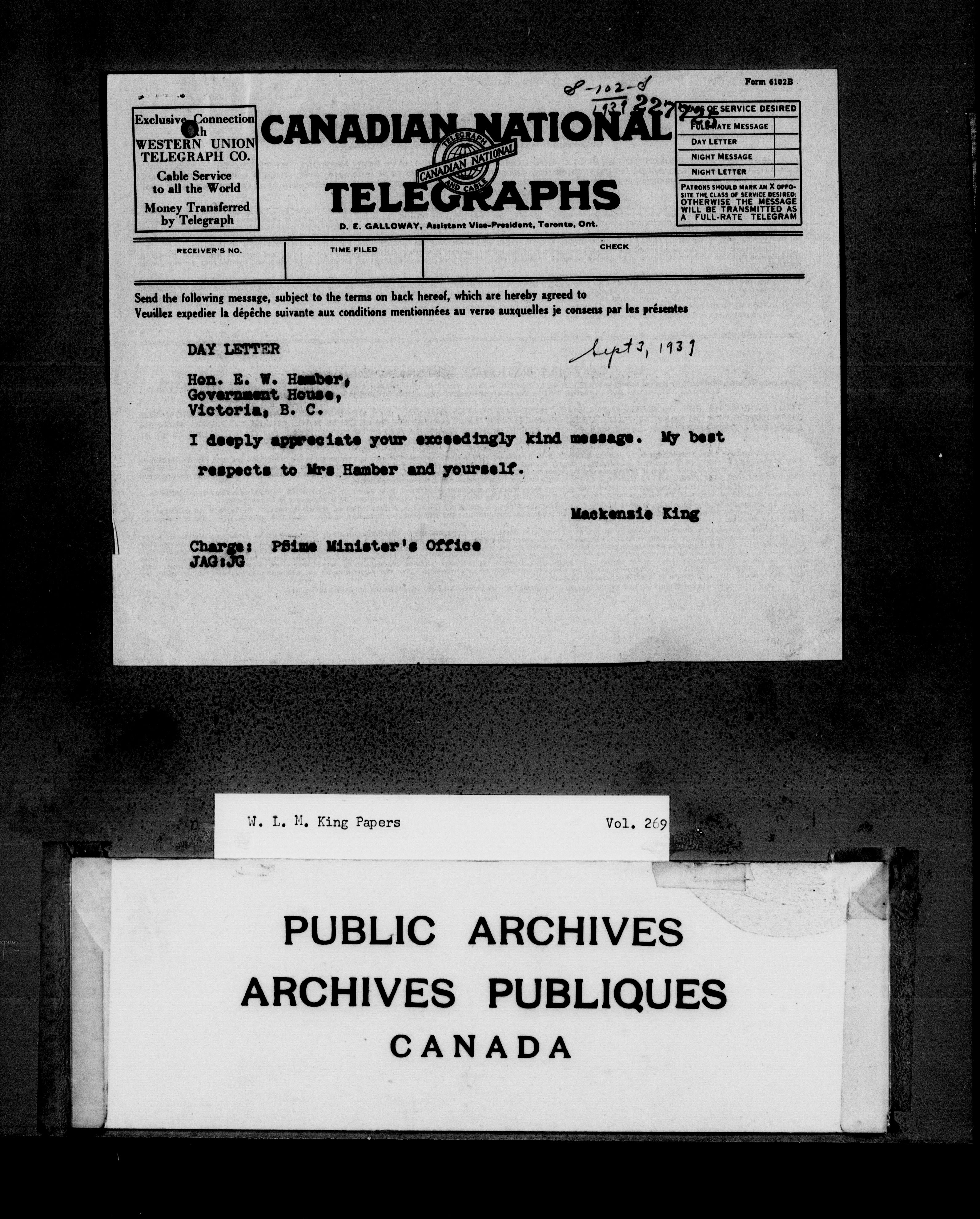 William Lyon Mackenzie King : Primary series correspondence (J1) - 3743