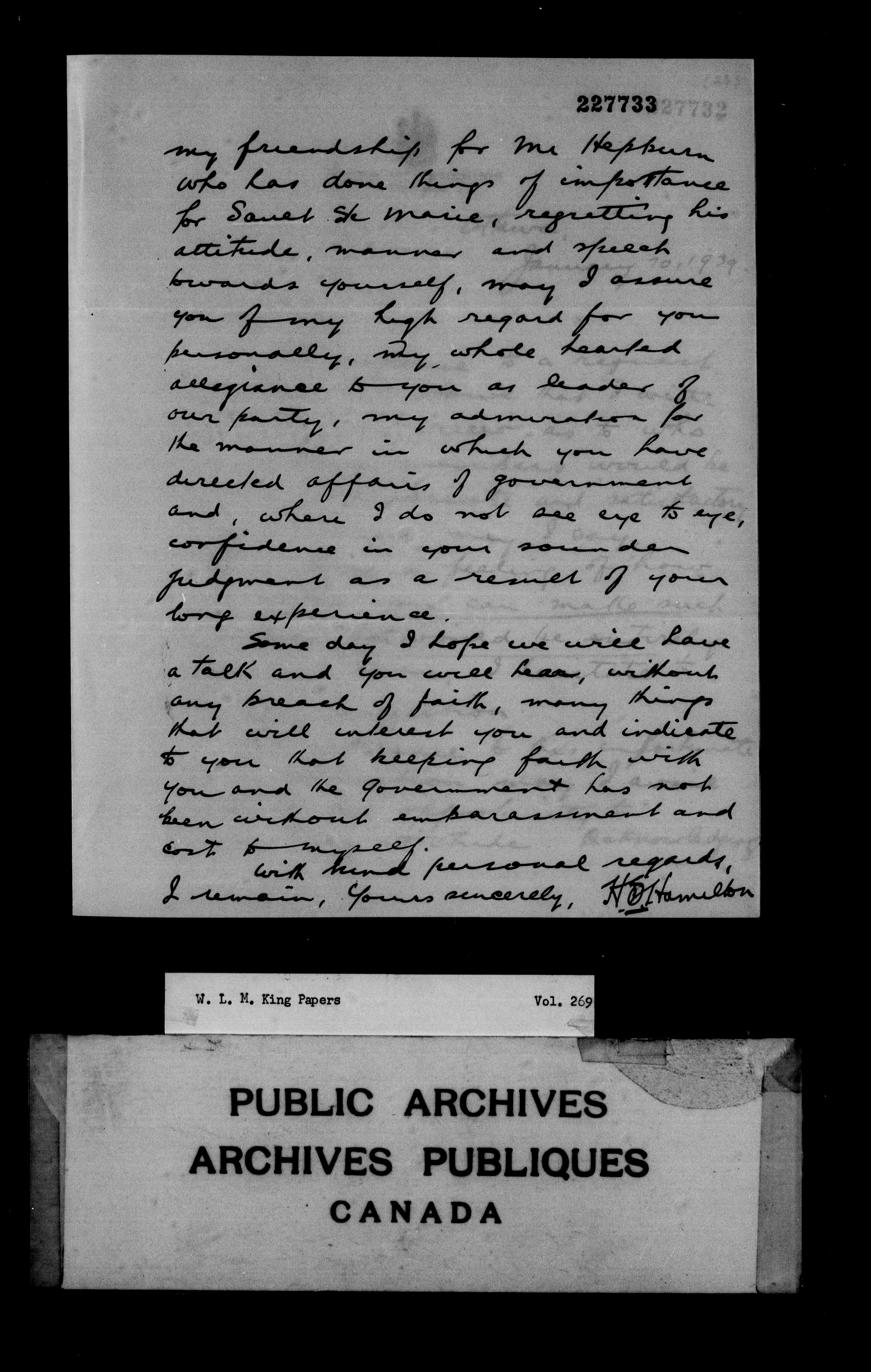 William Lyon Mackenzie King : Primary series correspondence (J1) - 3743