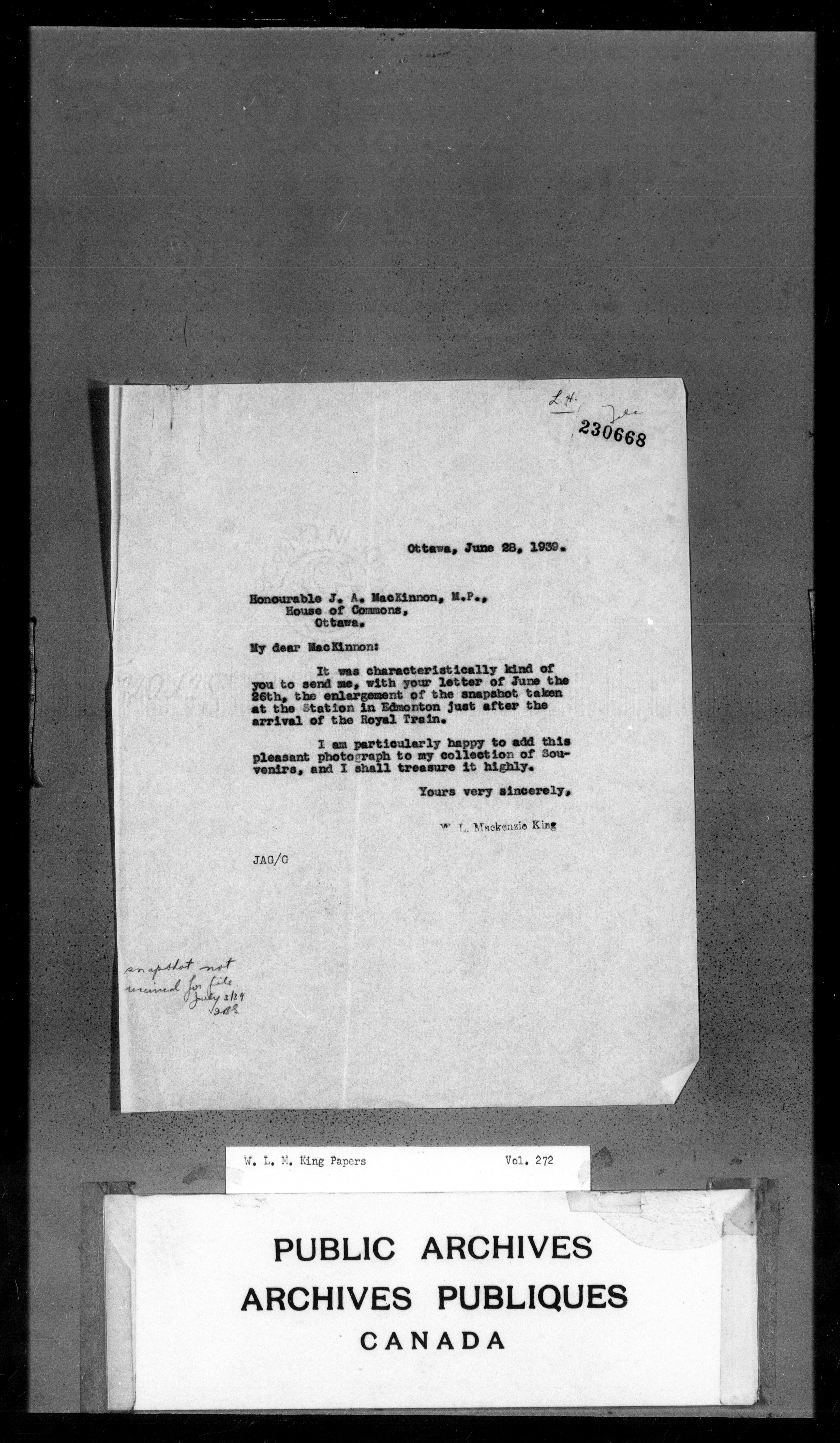 William Lyon Mackenzie King : Primary series correspondence (J1) : C-3746