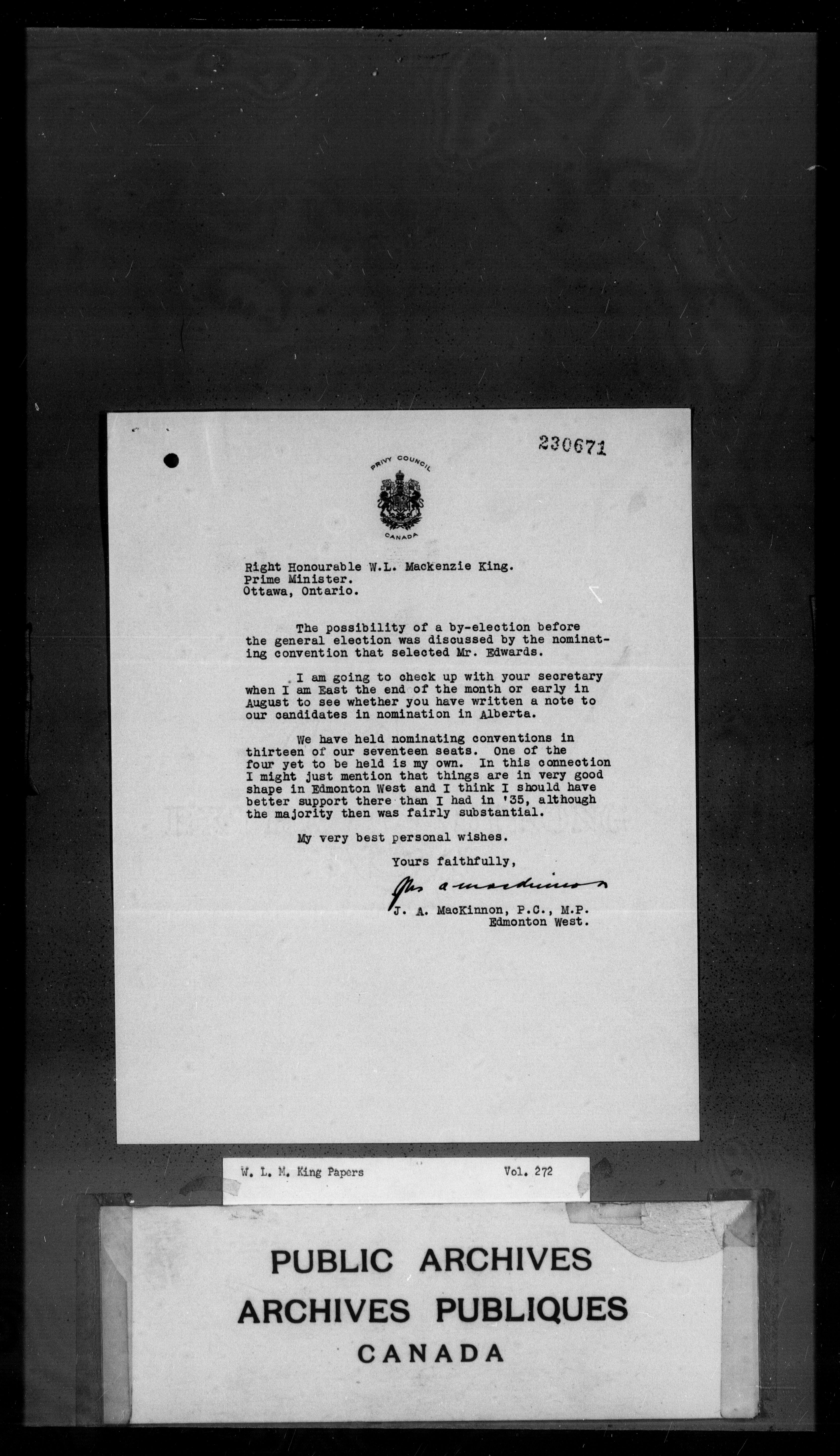 William Lyon Mackenzie King : Primary series correspondence (J1) : C-3746