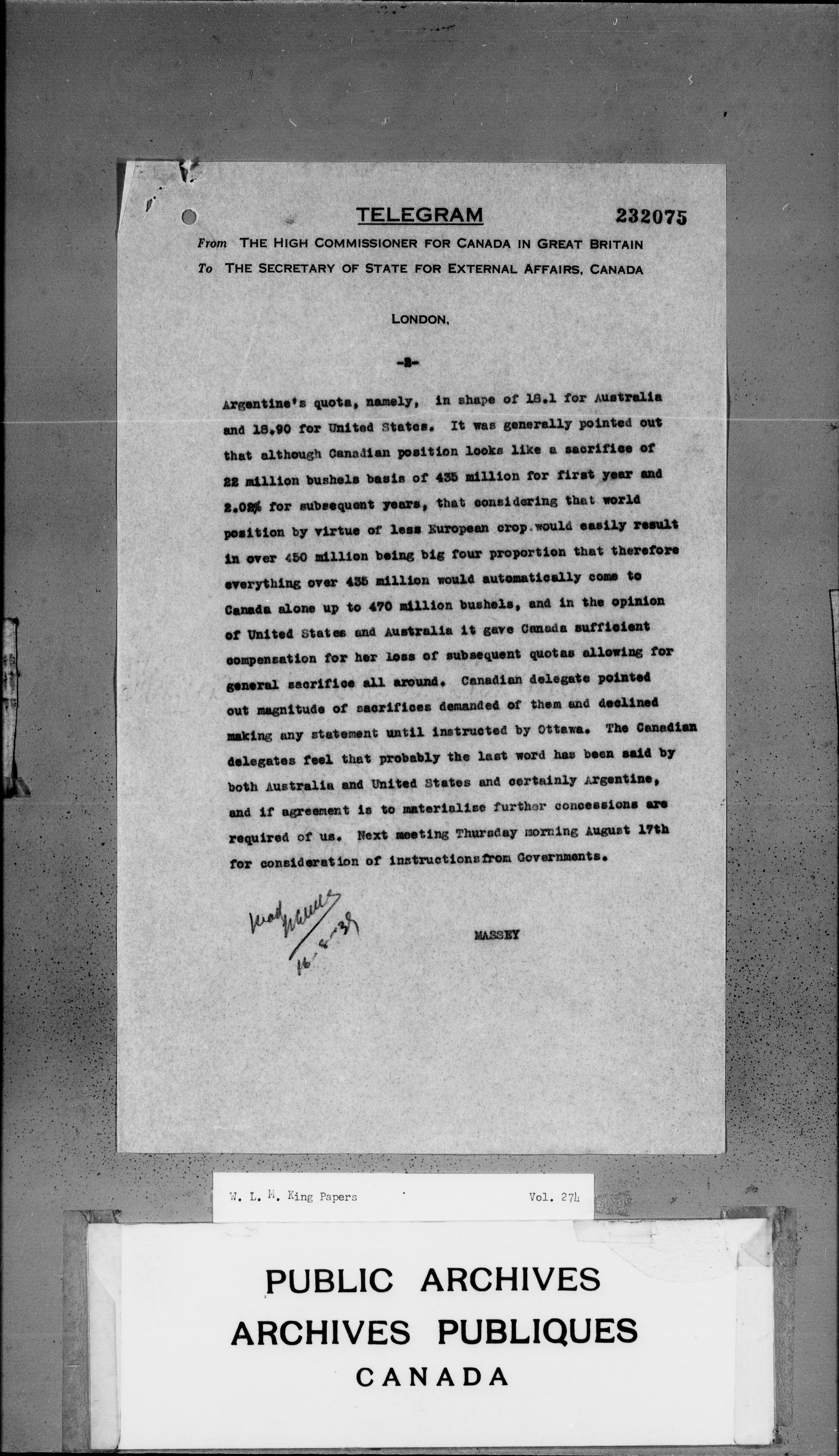 William Lyon Mackenzie King : Primary series correspondence (J1) - 3747