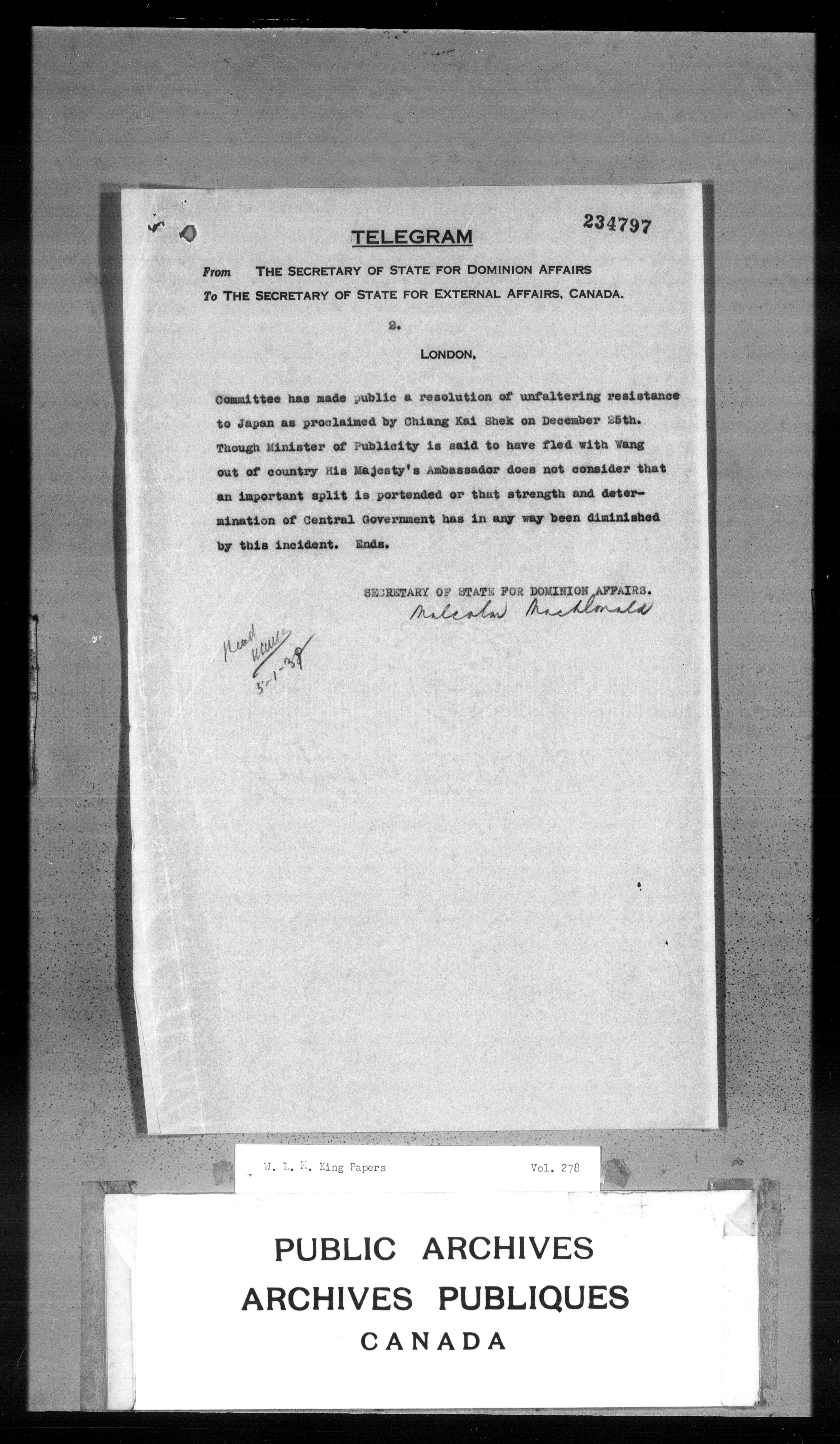 William Lyon Mackenzie King : Primary series correspondence (J1) - 3748