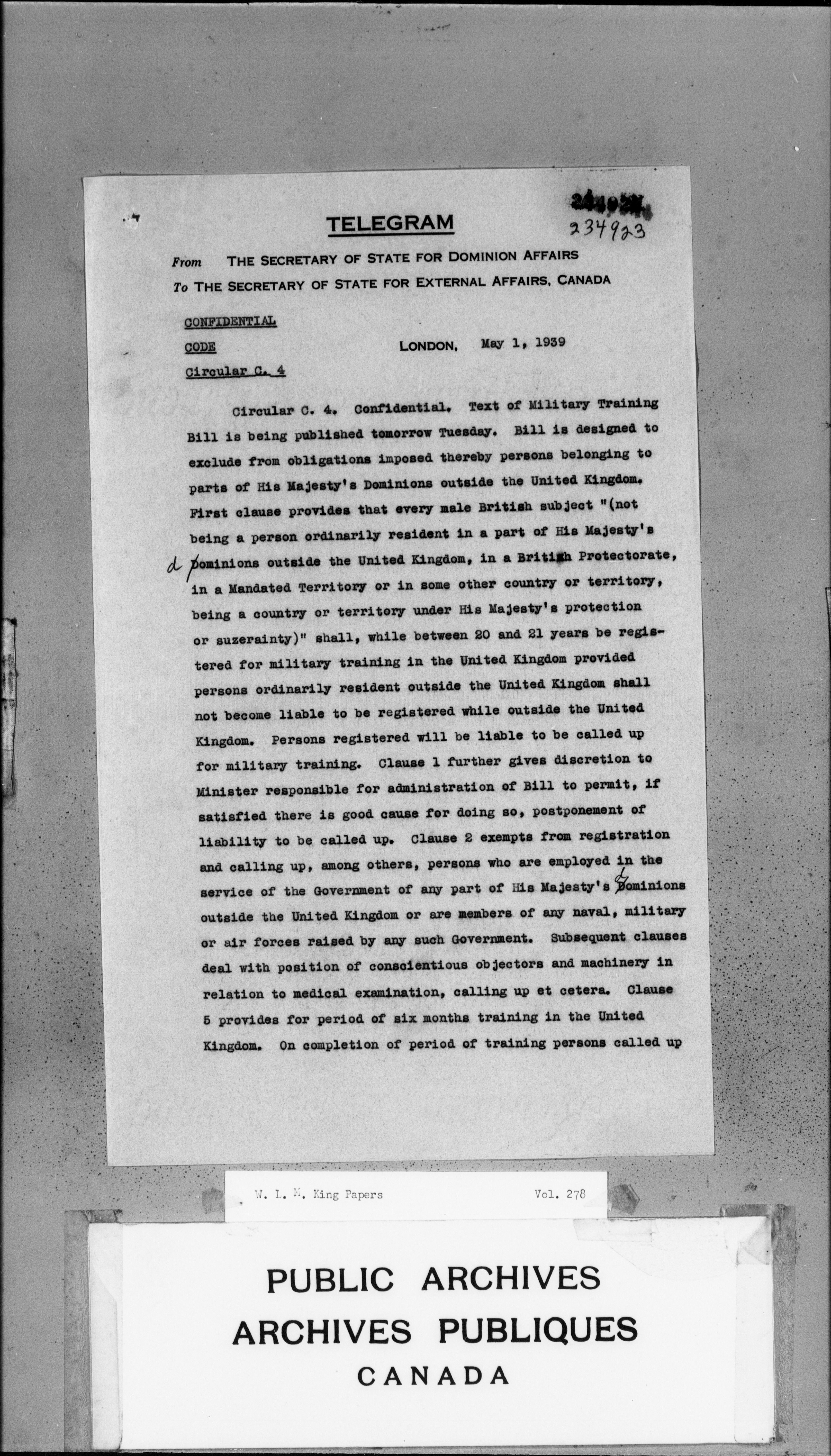 William Lyon Mackenzie King : Primary series correspondence (J1) - 3749