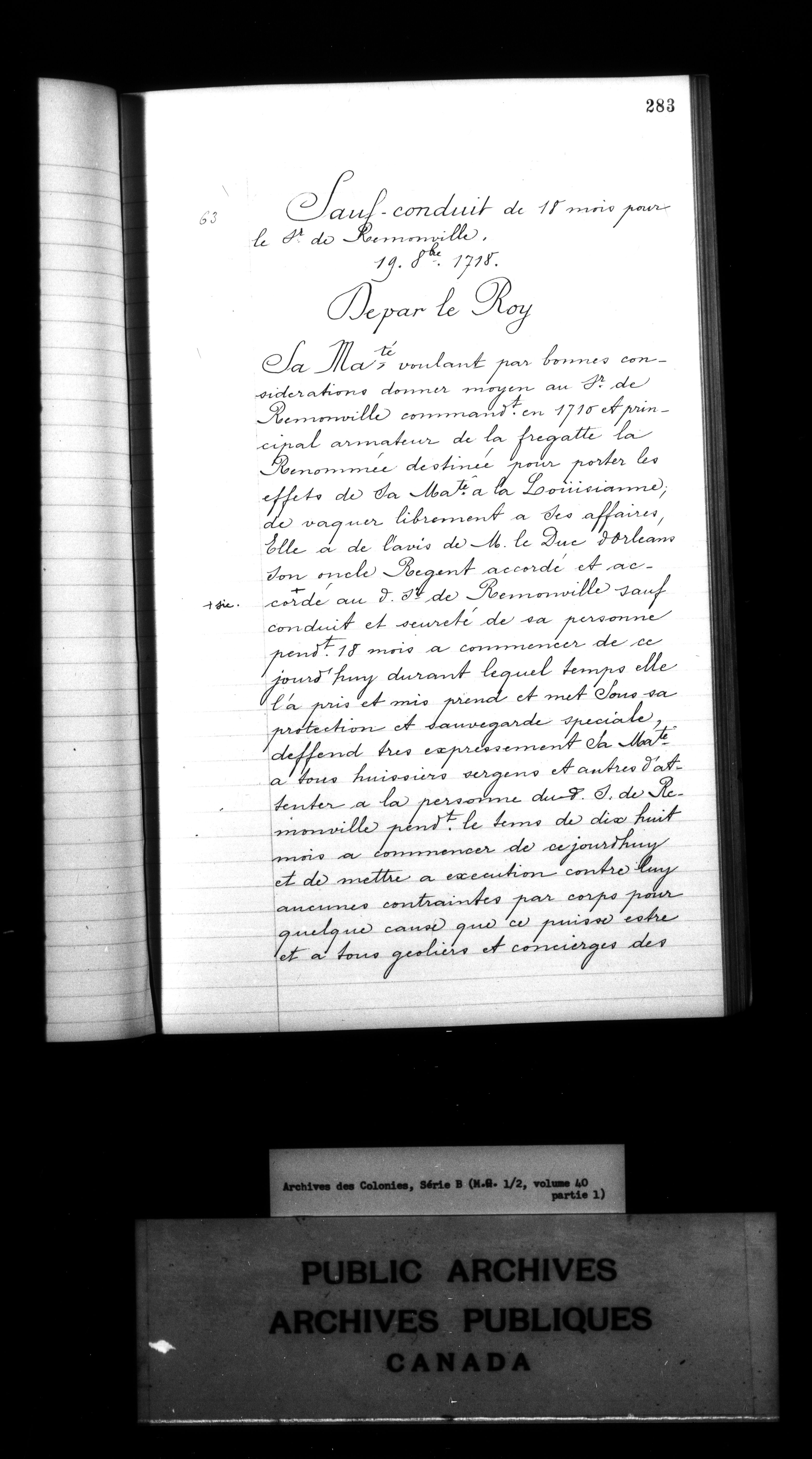 France : Archives des Colonies, Séries B, Lettres envoyées - 3765