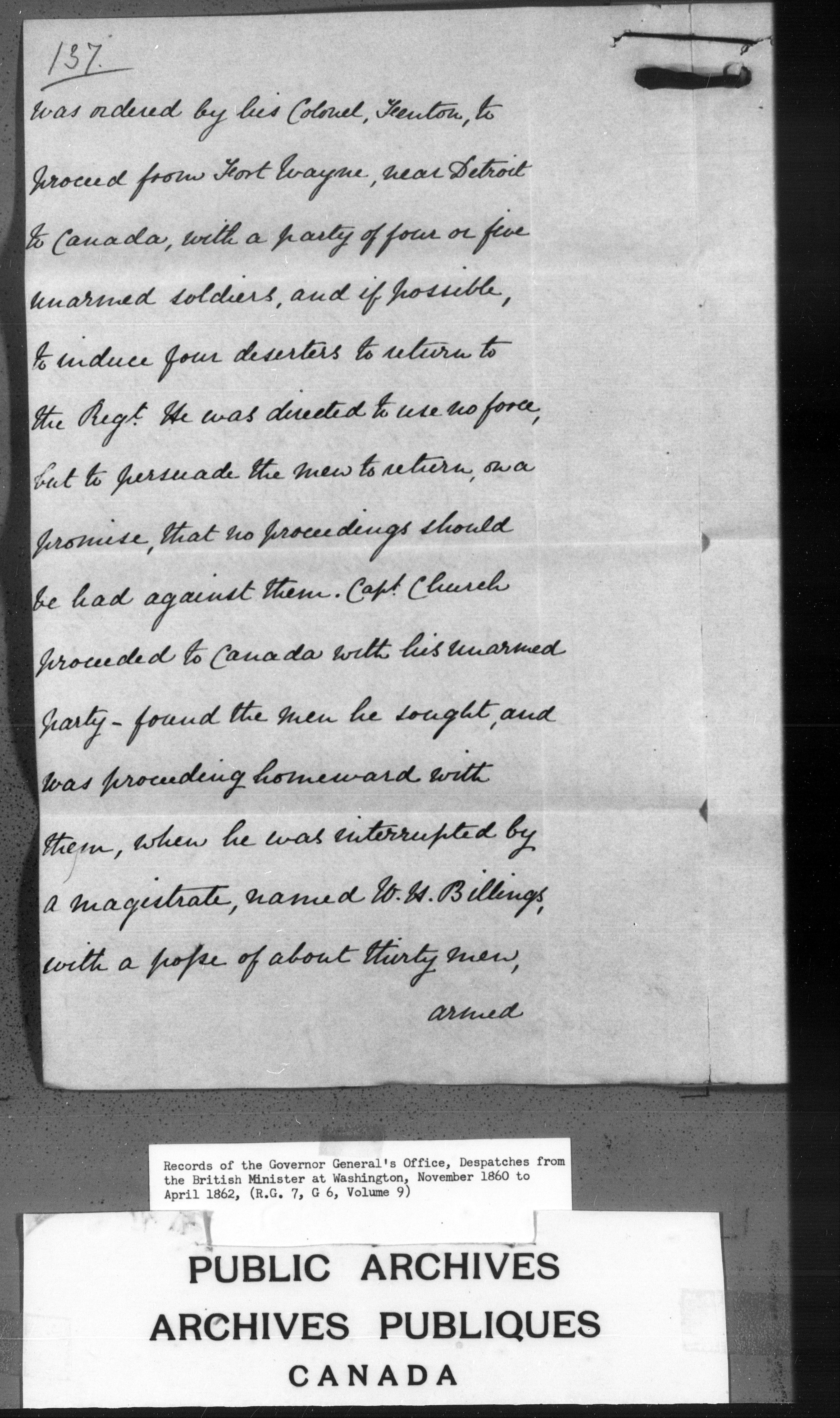 Pre-Confederation despatches from the British Minister at Washington ; Correspondence with the British Minister at Washington - C-3895