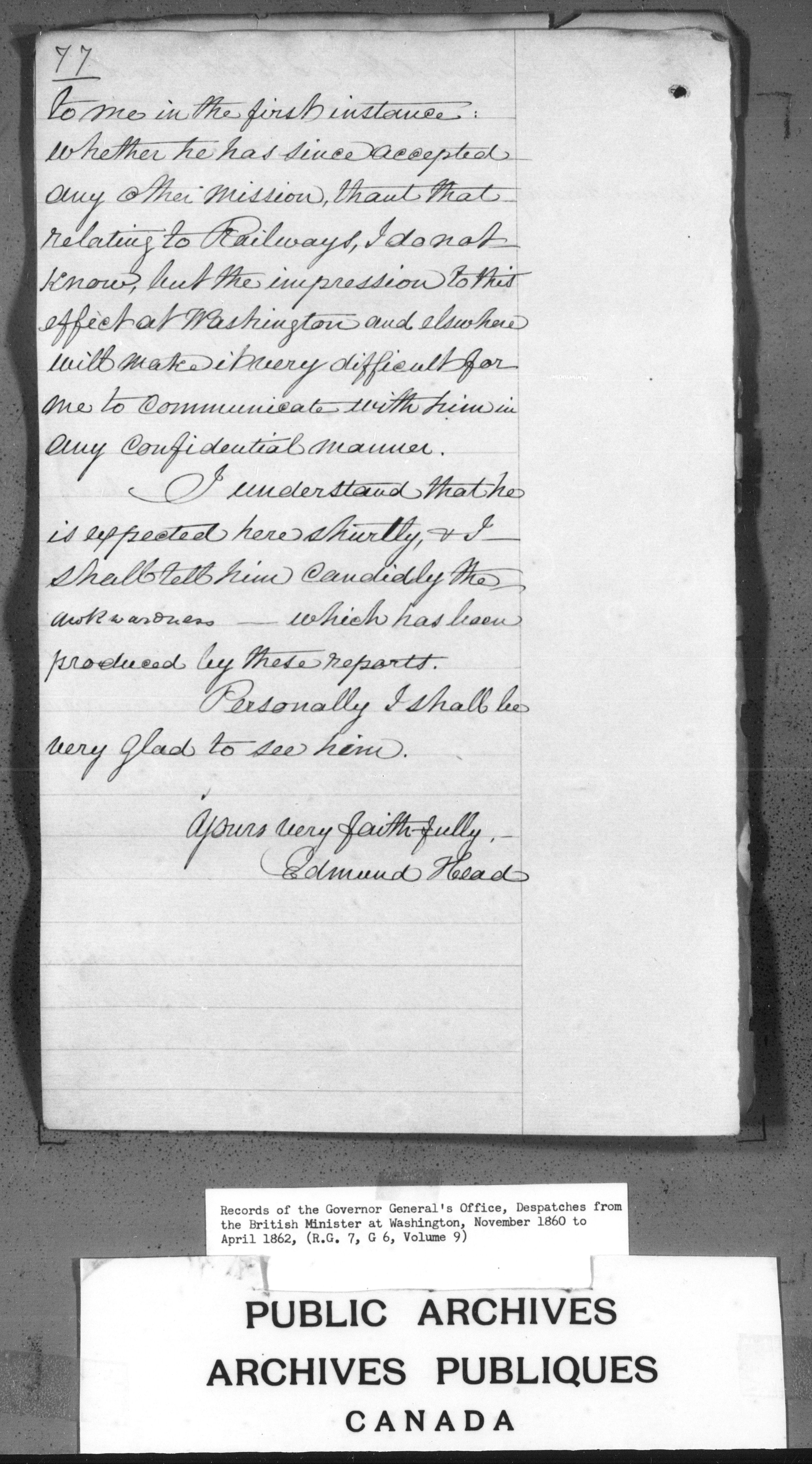 Pre-Confederation despatches from the British Minister at Washington ; Correspondence with the British Minister at Washington - C-3895