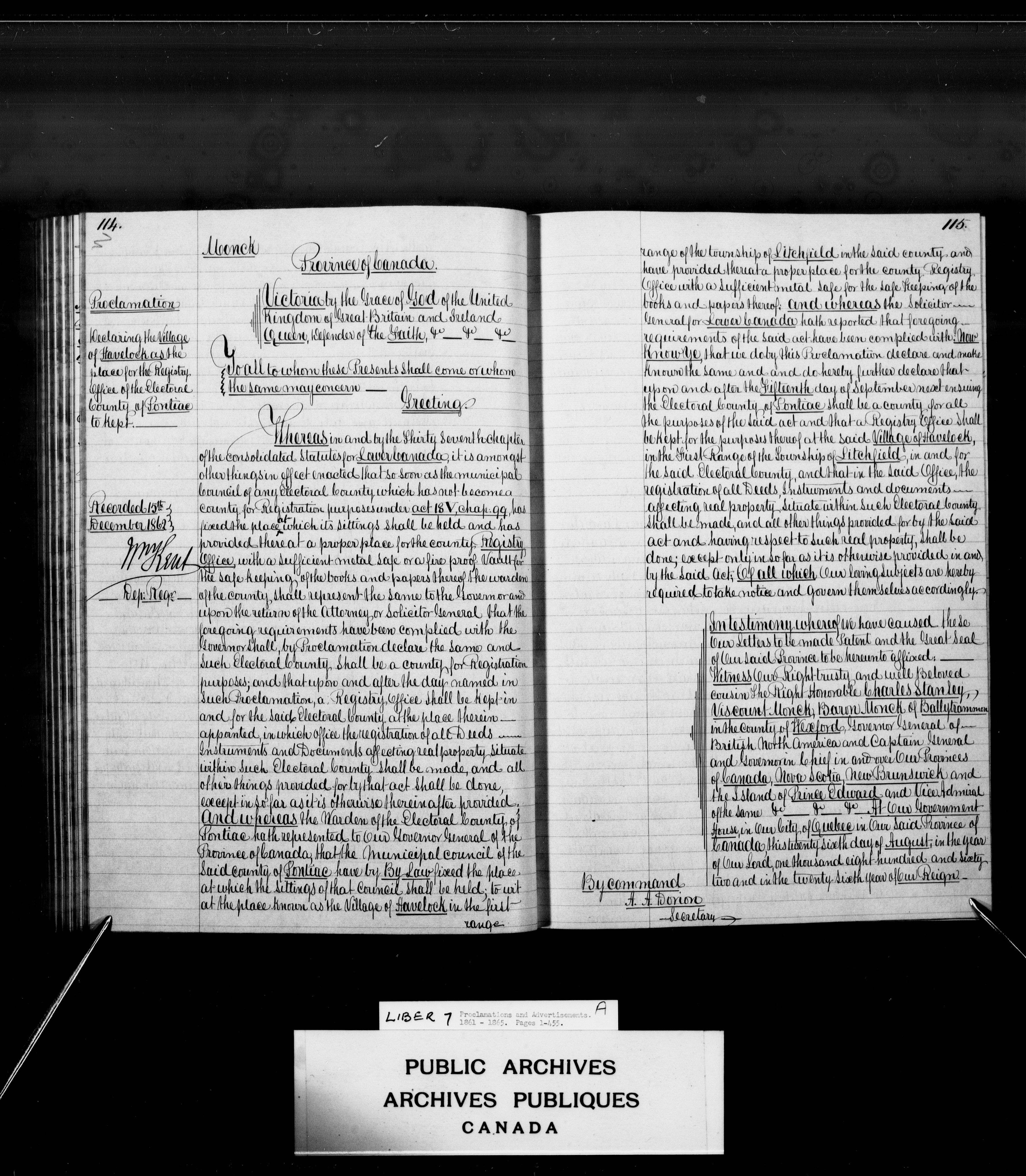 Proclamations from Quebec, Upper and Lower Canada, the Province of Canada and Canada - 3910