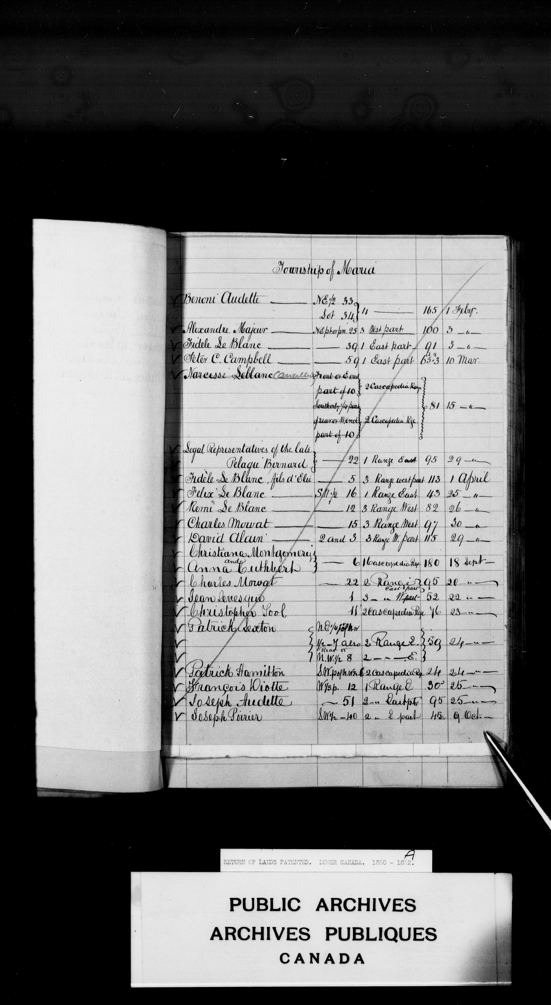 Land documents concerning Quebec, Upper and Lower Canada, Canada East and Canada West and Canada - 3915