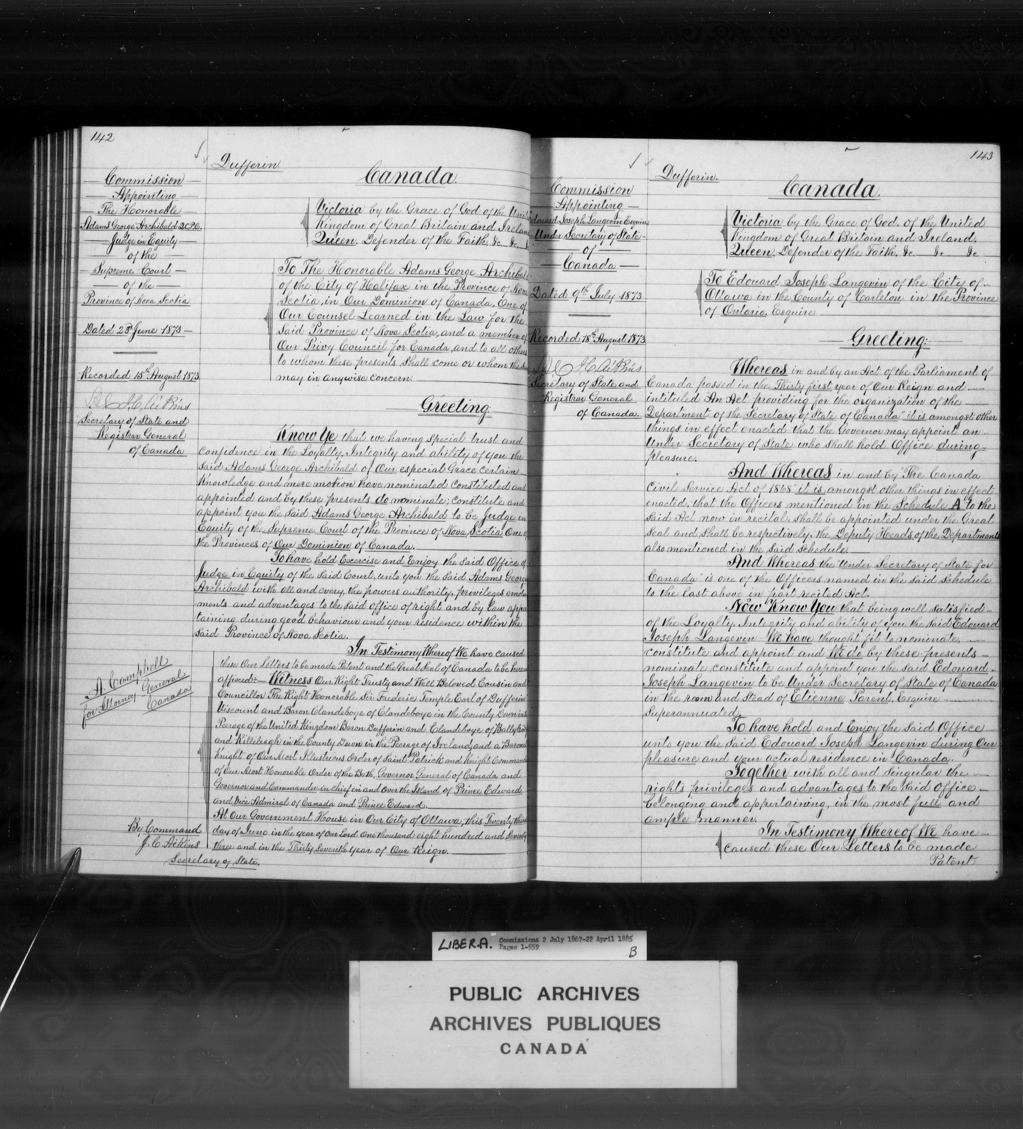 Commissions from Quebec, Upper and Lower Canada, Province of Canada and Canada - 3920