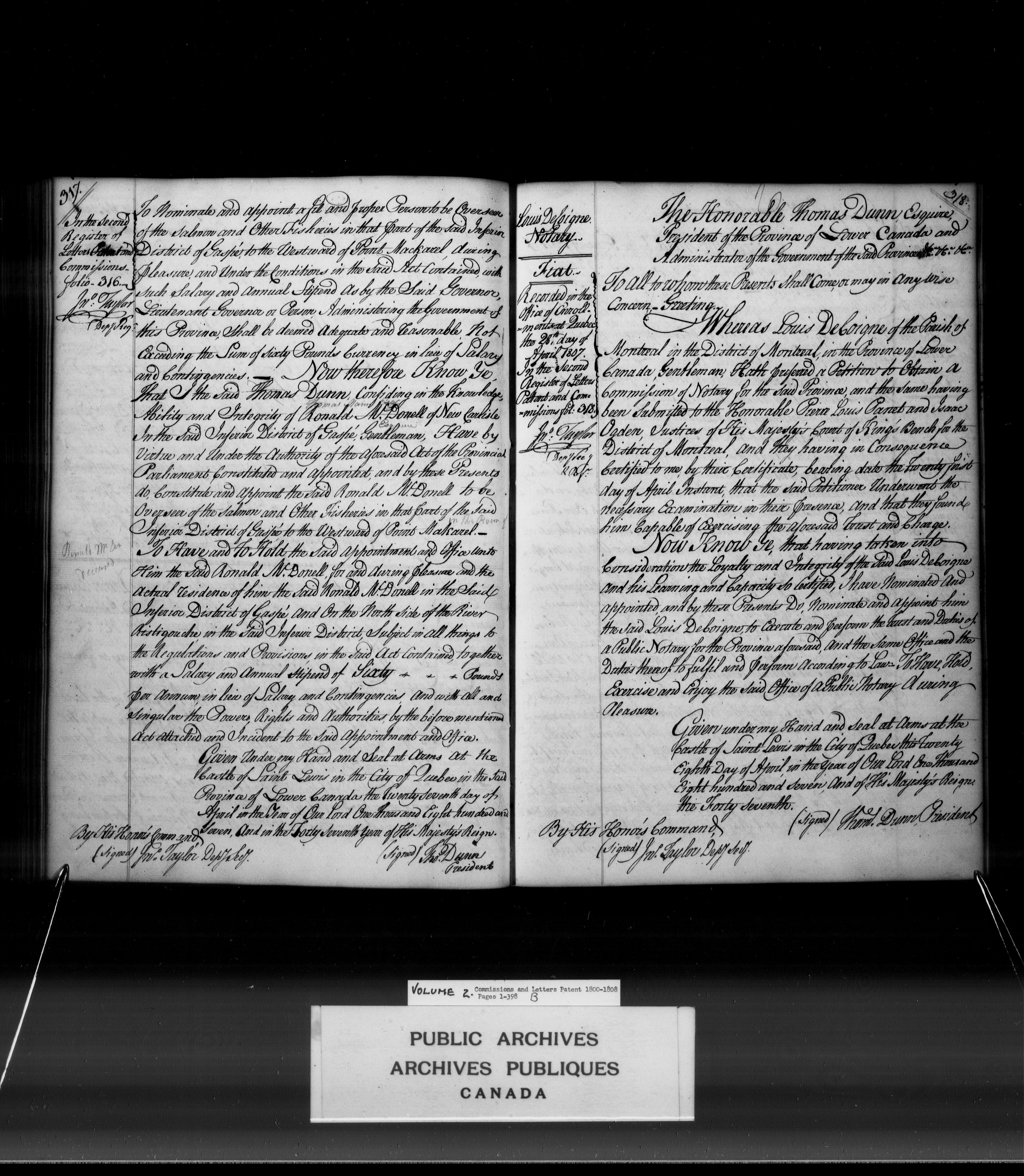 Commissions from Quebec, Upper and Lower Canada, Province of Canada and Canada - 3922