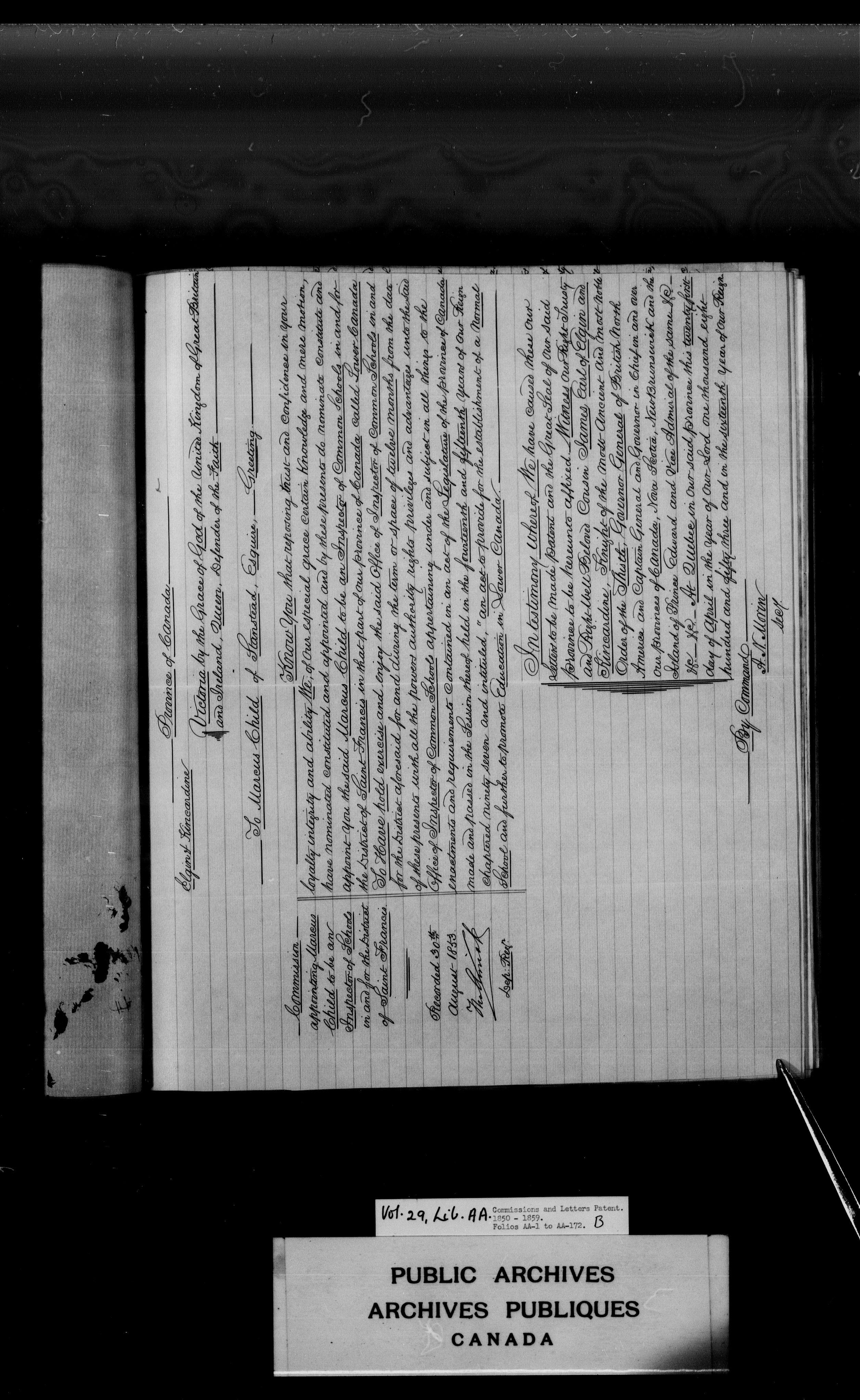 Commissions from Quebec, Upper and Lower Canada, Province of Canada and Canada : C-3928