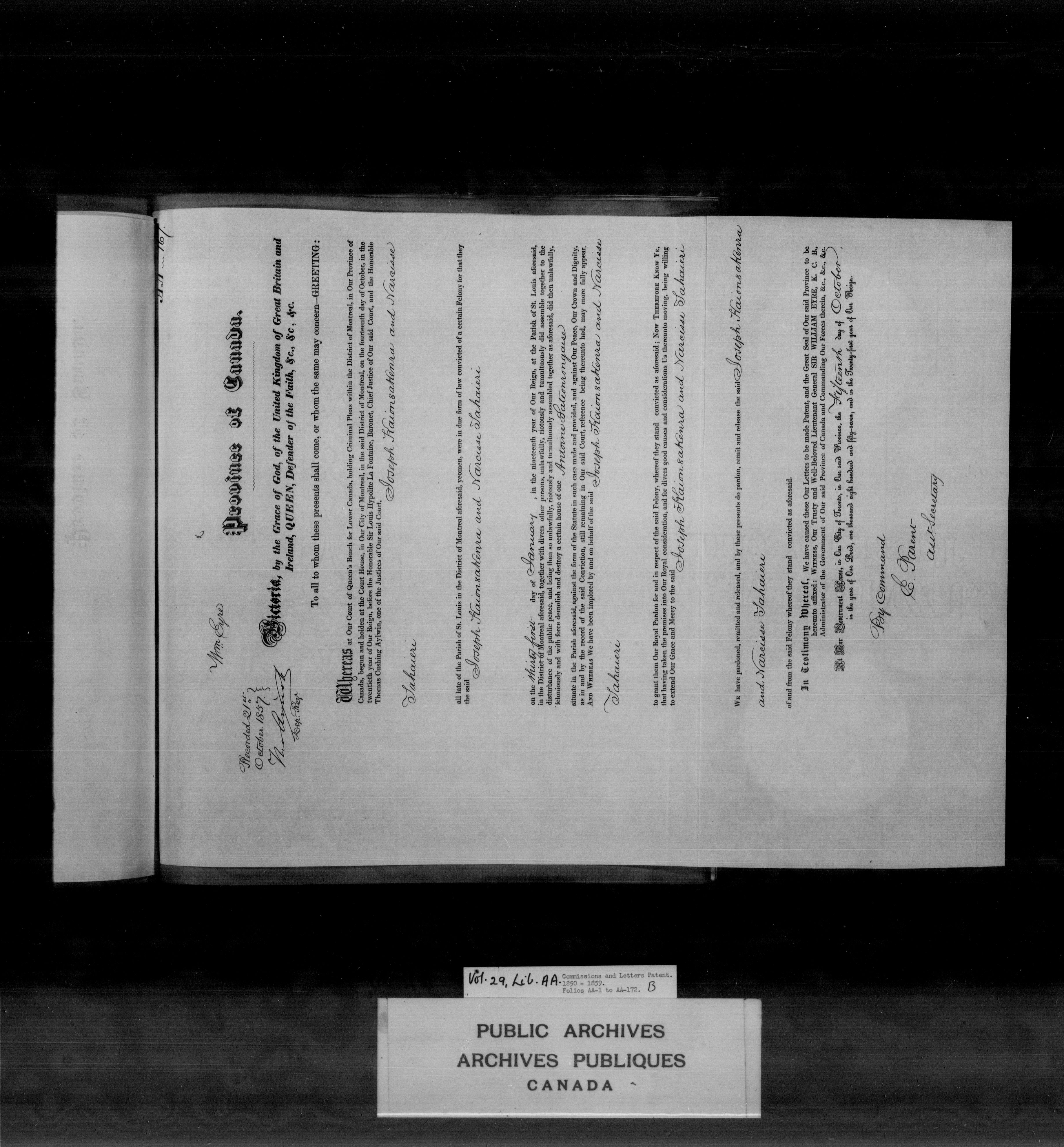 Commissions from Quebec, Upper and Lower Canada, Province of Canada and Canada - 3929