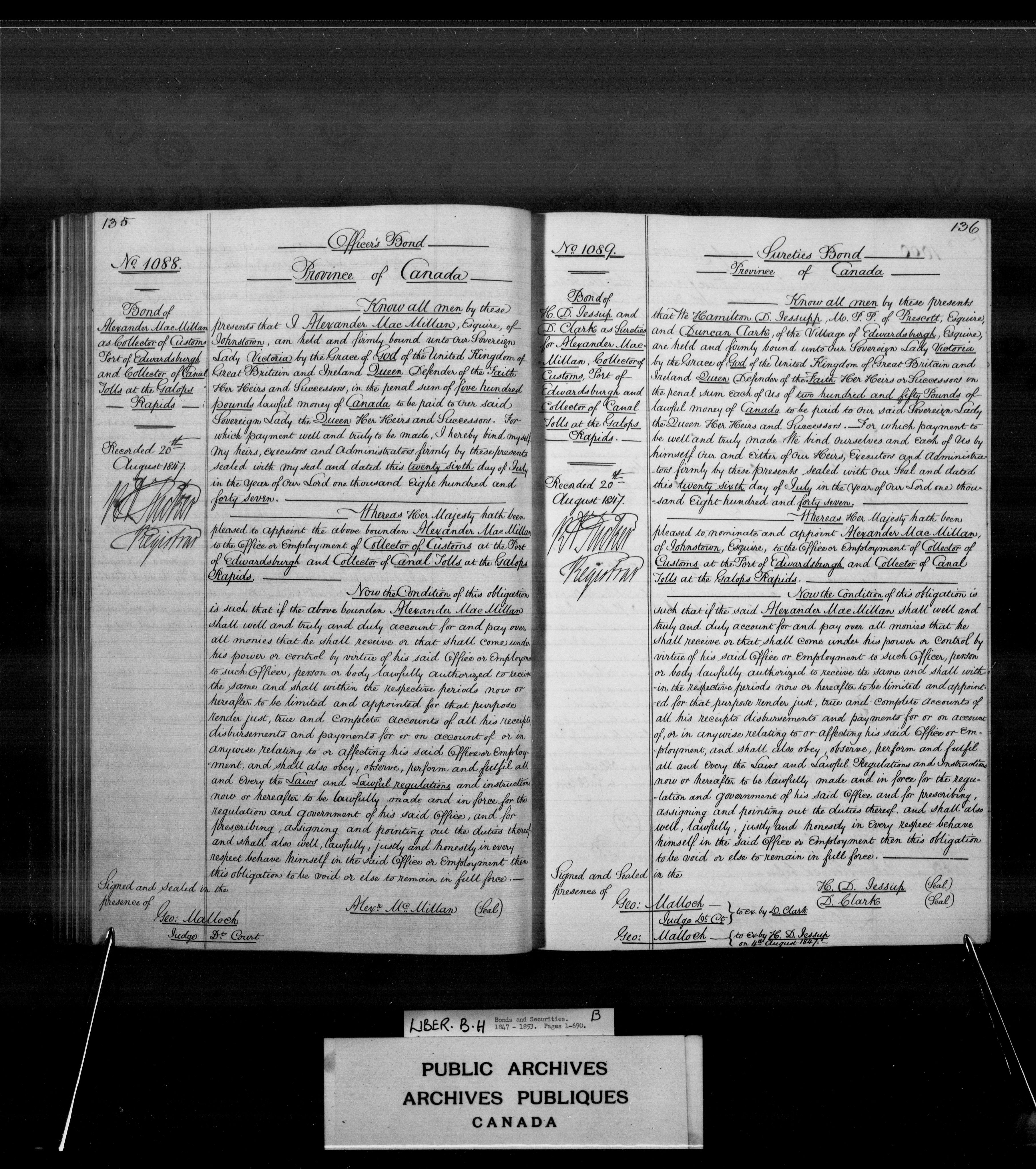 Bonds and securities Upper and Lower Canada, Province of Canada, and Canada - 3937