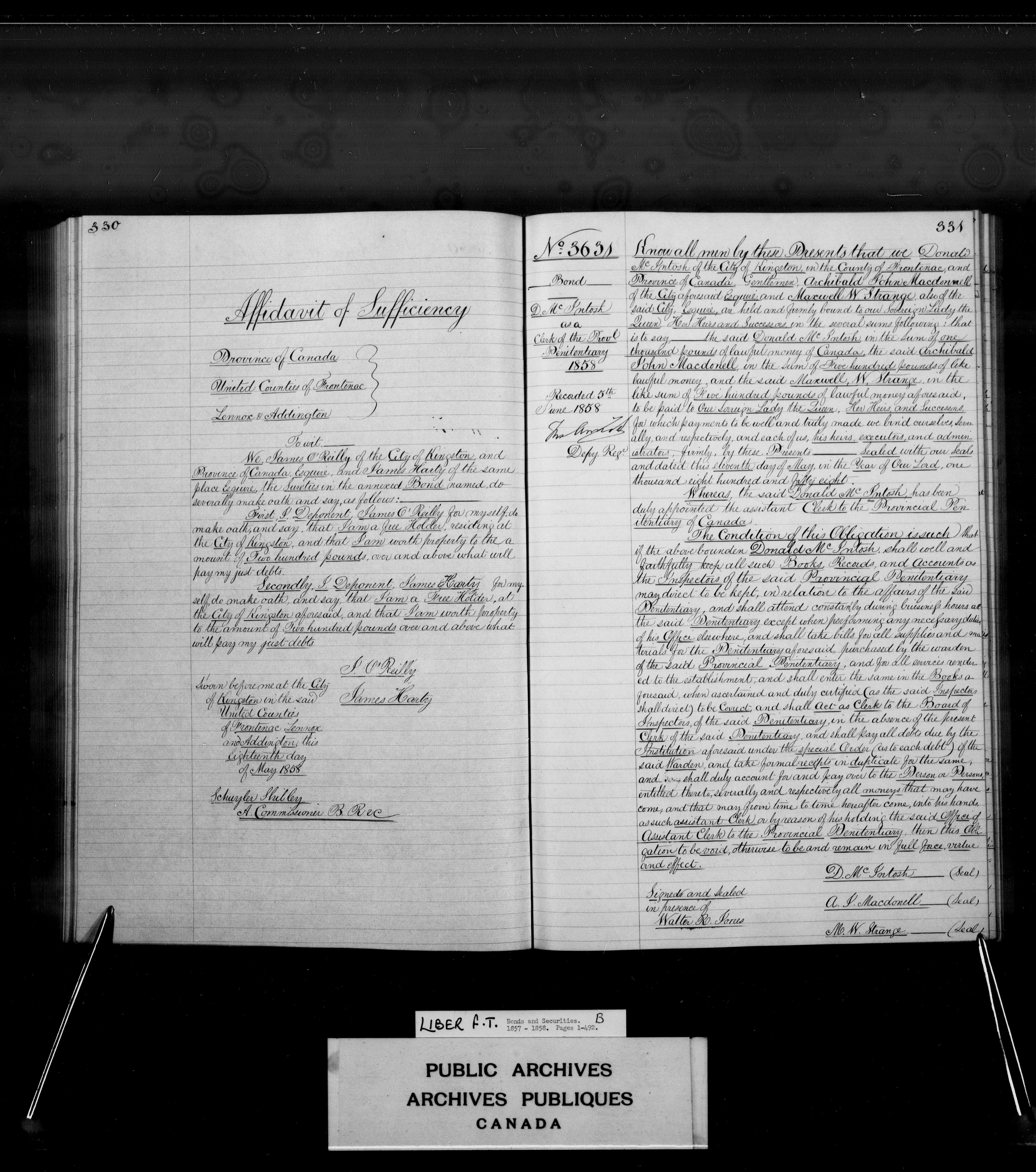 Bonds and securities Upper and Lower Canada, Province of Canada, and Canada : C-3938
