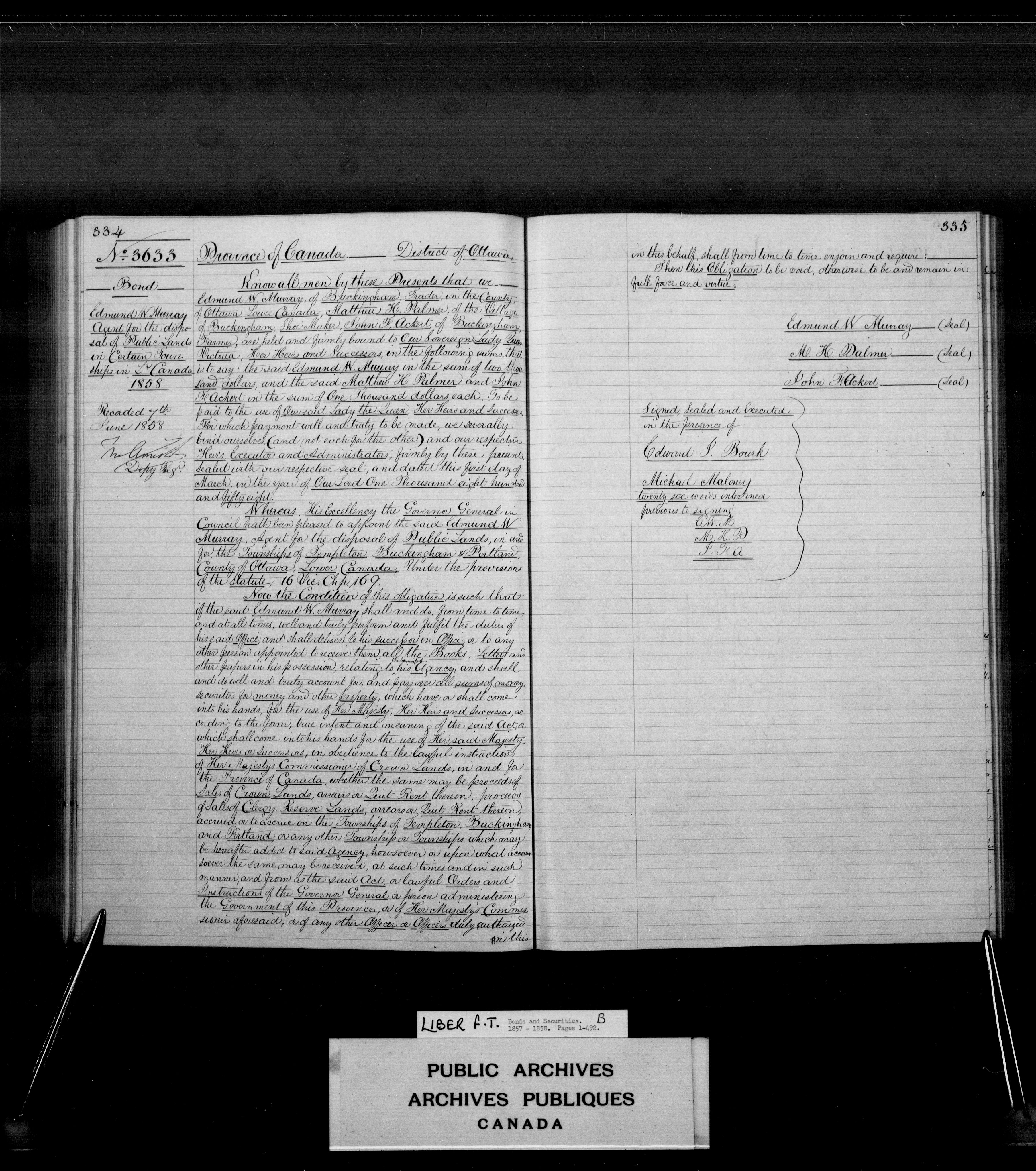 Bonds and securities Upper and Lower Canada, Province of Canada, and Canada - 3938