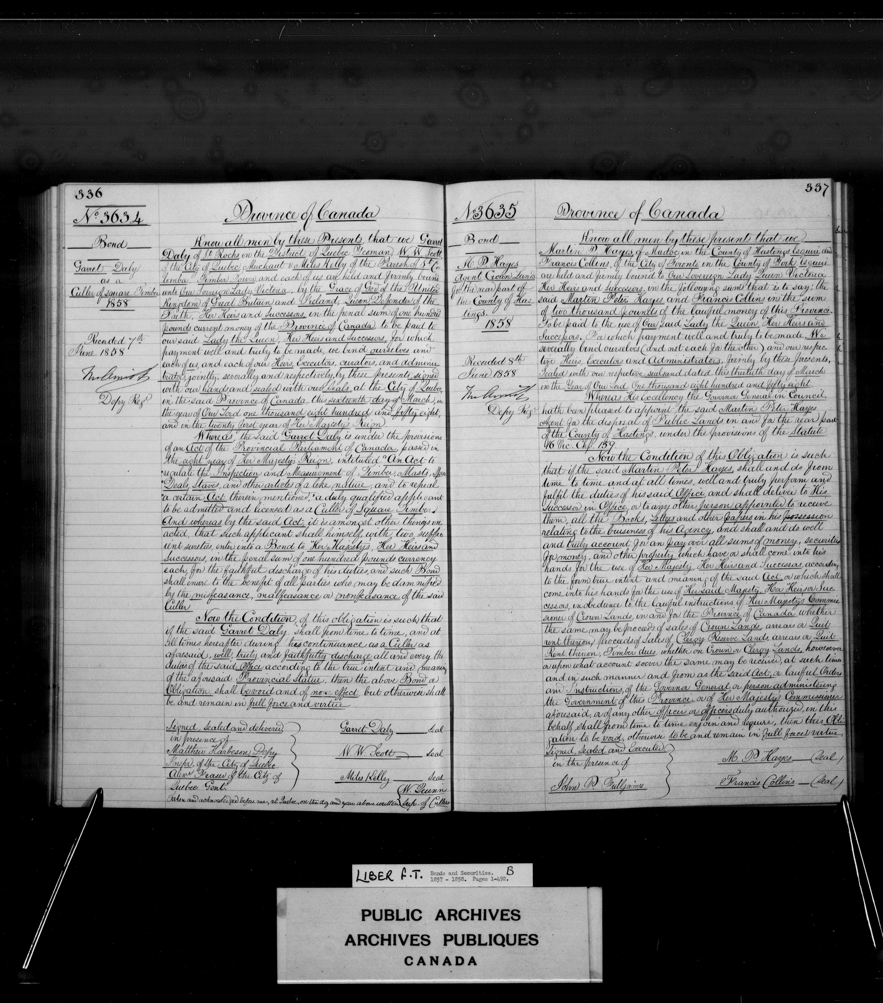 Bonds and securities Upper and Lower Canada, Province of Canada, and Canada - 3938