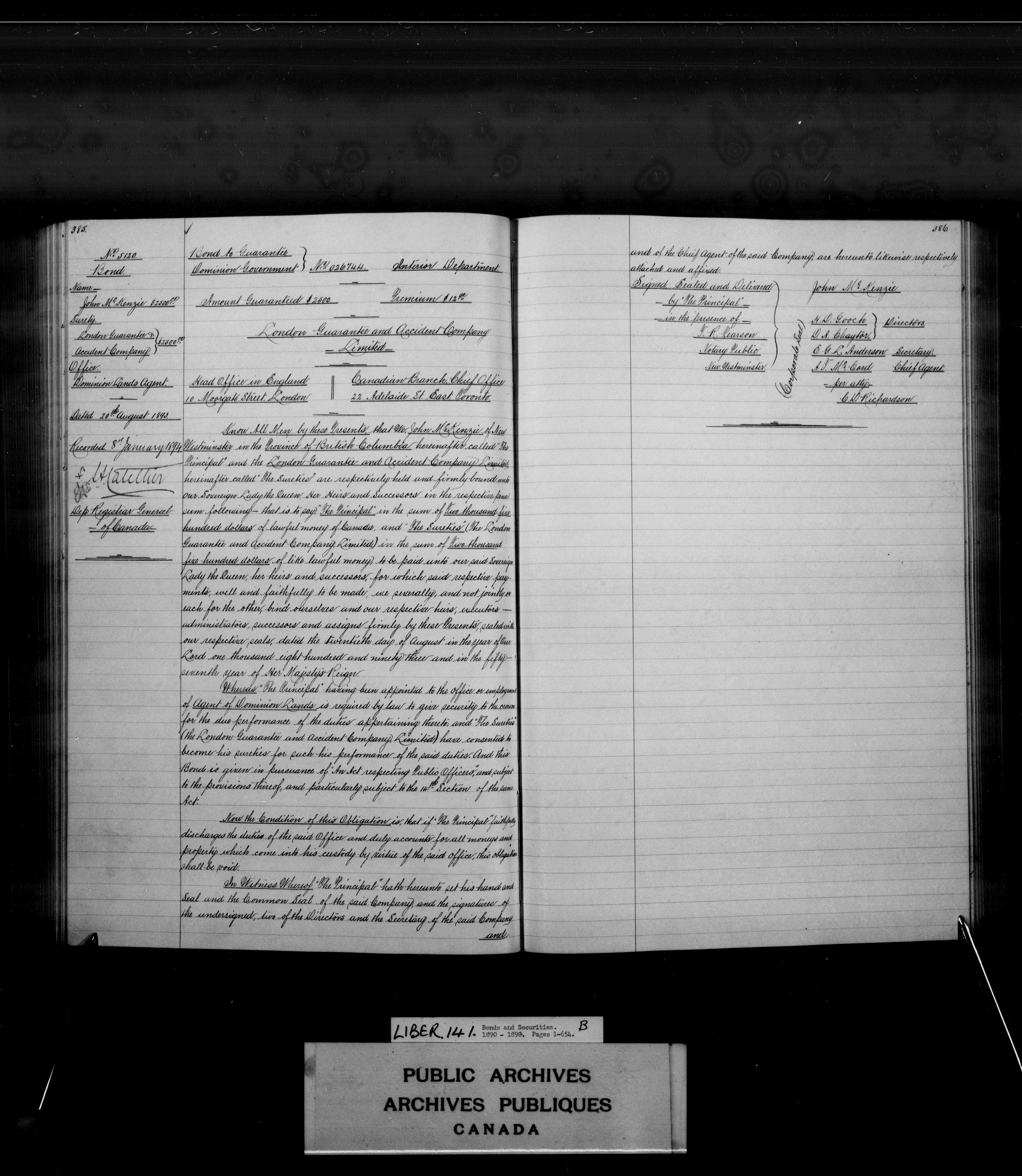 Bonds and securities Upper and Lower Canada, Province of Canada, and Canada : C-3940