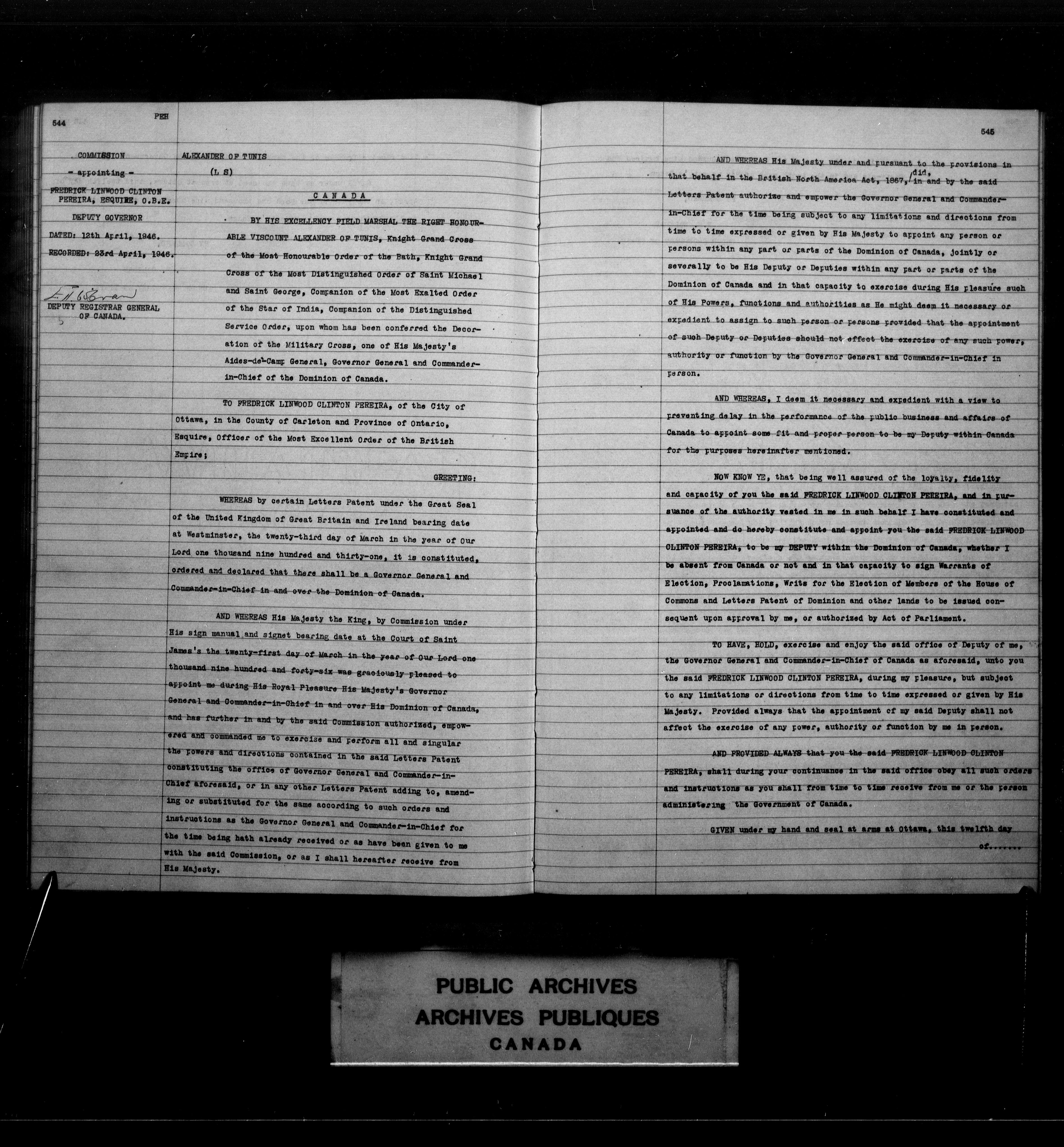 Exemplifications, Upper Canada, Province of Canada and Canada, 1853-1951 - 3968