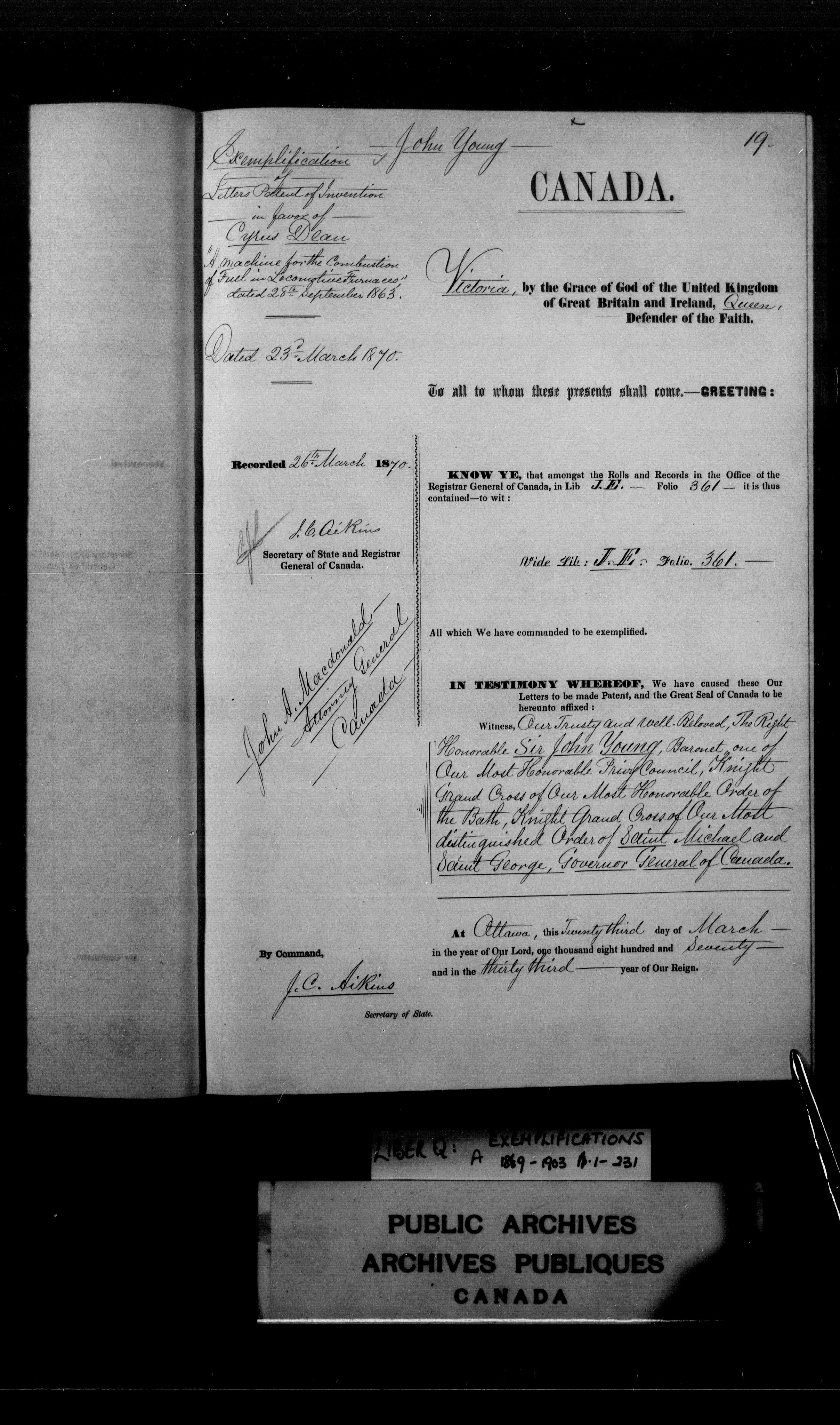 Exemplifications, Upper Canada, Province of Canada and Canada, 1853-1951 - 3968