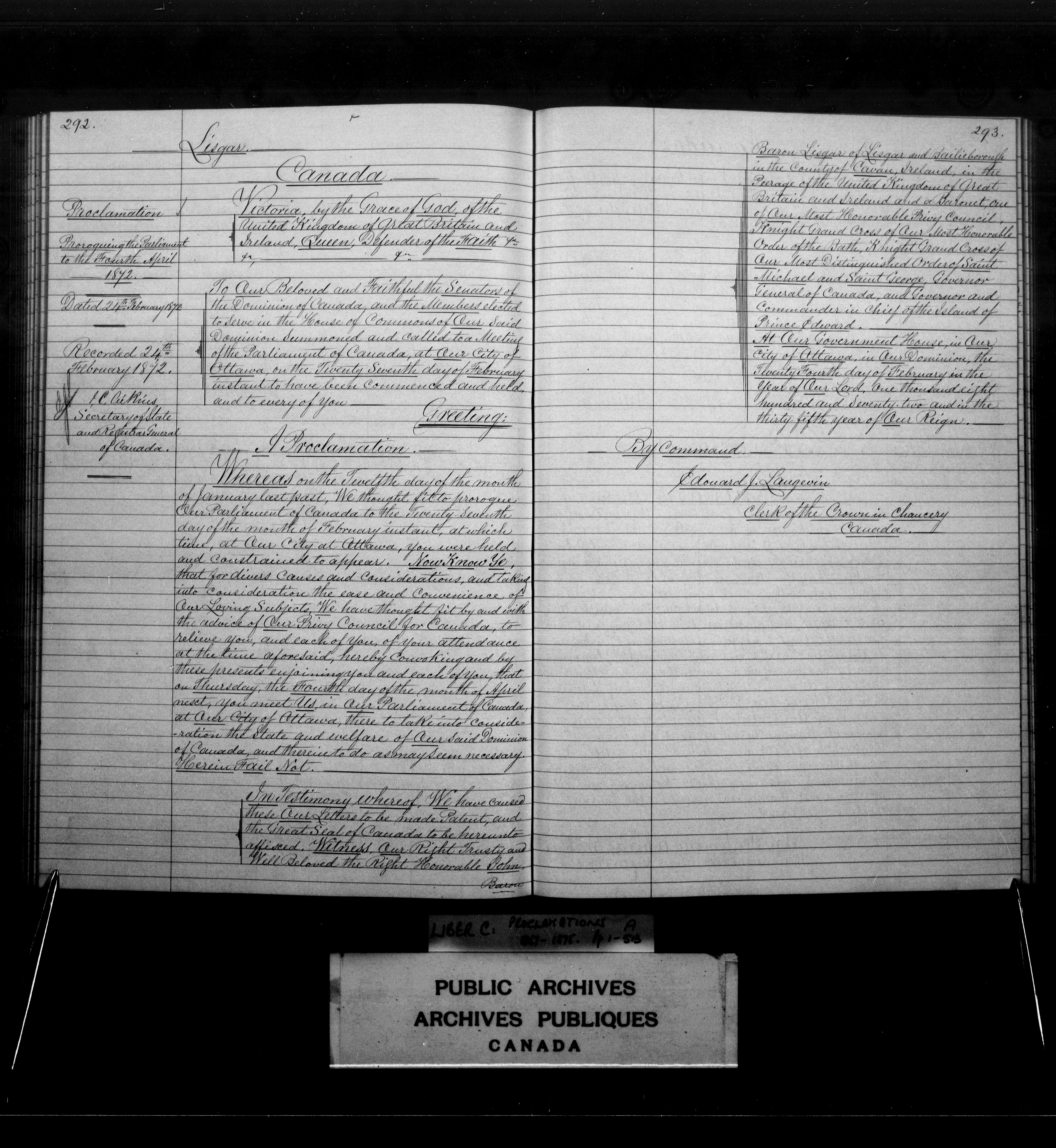 Exemplifications, Upper Canada, Province of Canada and Canada, 1853-1951 - 3968