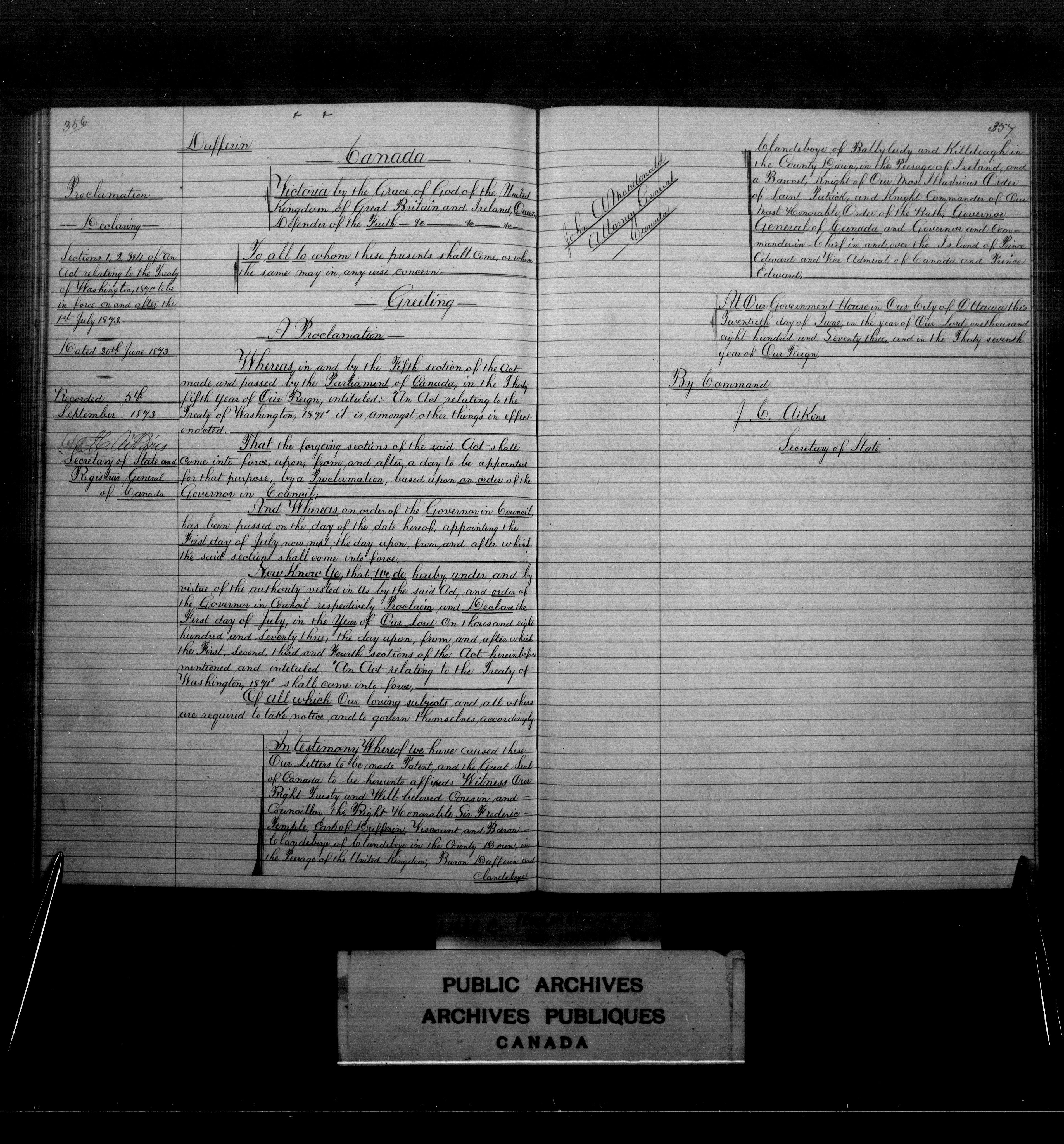 Exemplifications, Upper Canada, Province of Canada and Canada, 1853-1951 : C-3968