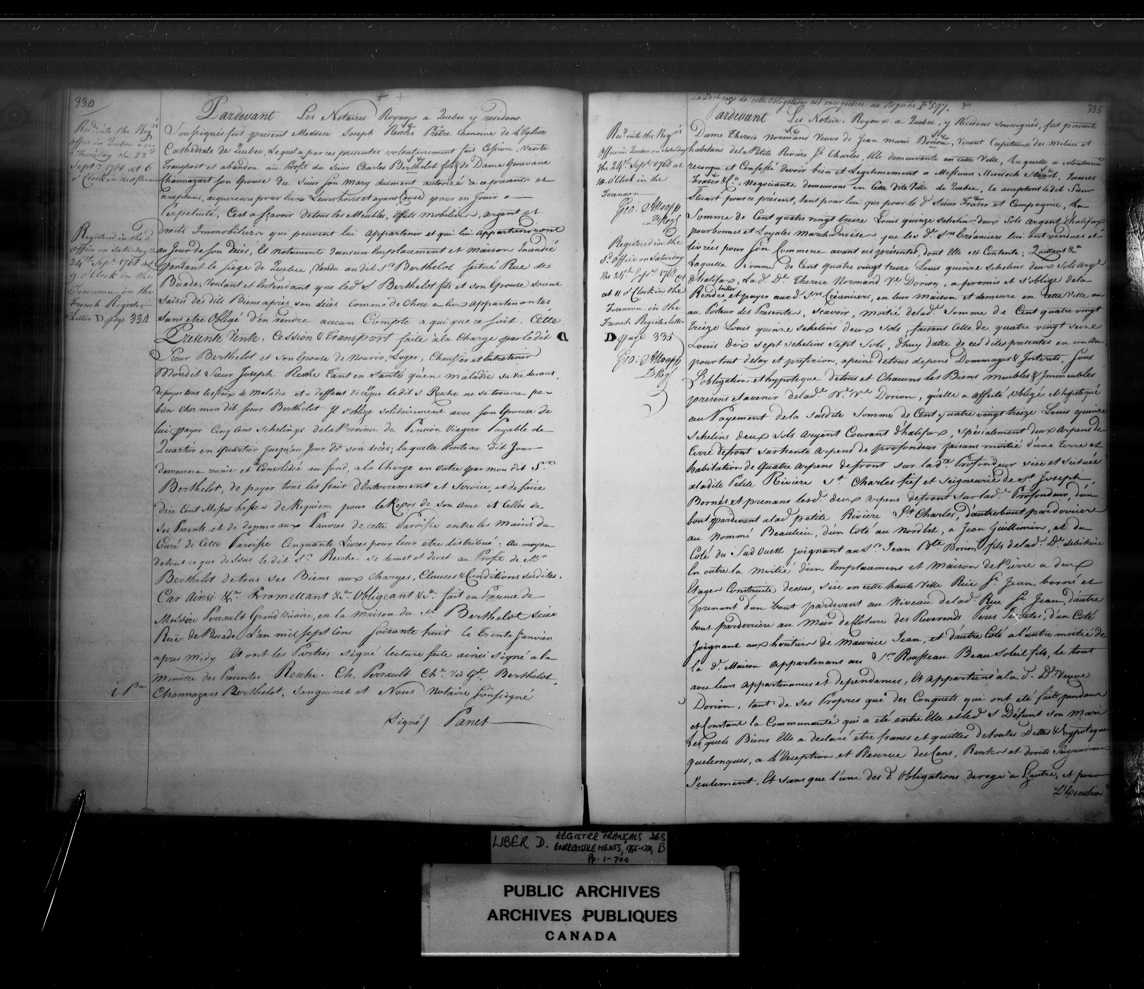 Land documents concerning Quebec, Upper and Lower Canada, Canada East and Canada West and Canada - 3972