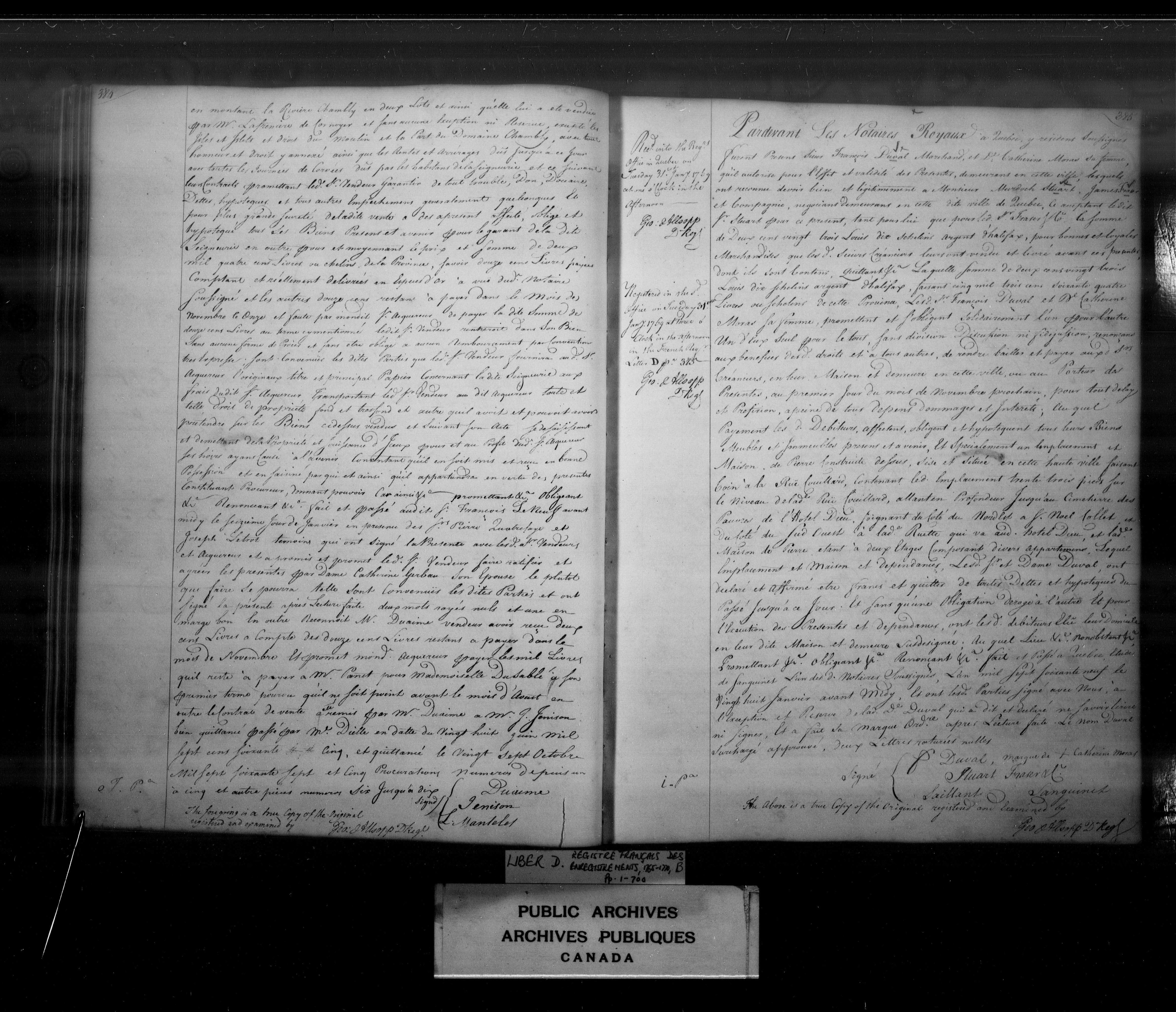 Land documents concerning Quebec, Upper and Lower Canada, Canada East and Canada West and Canada - 3972