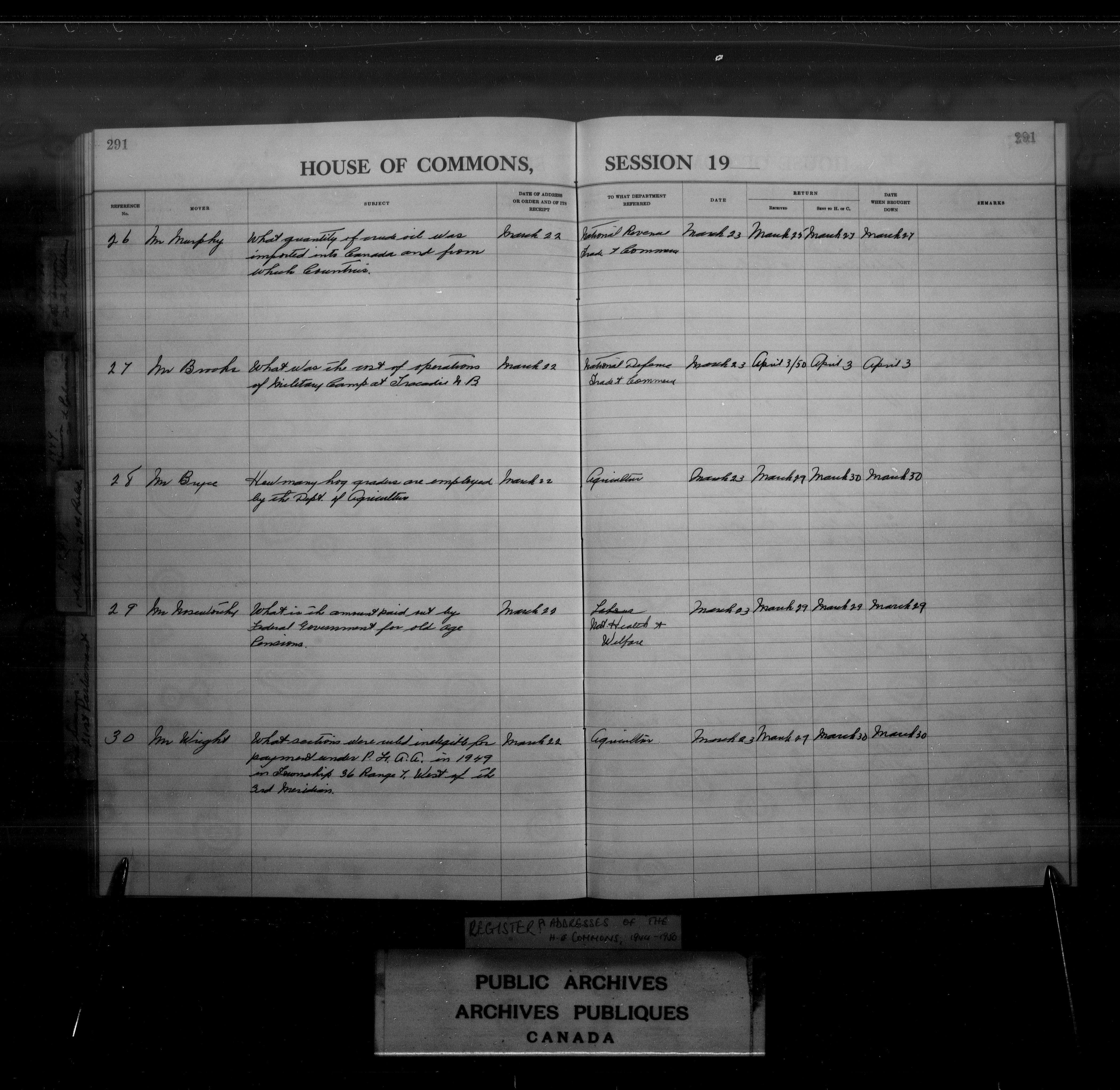 Orders and addresses of the House of Commons and Senate - 3981