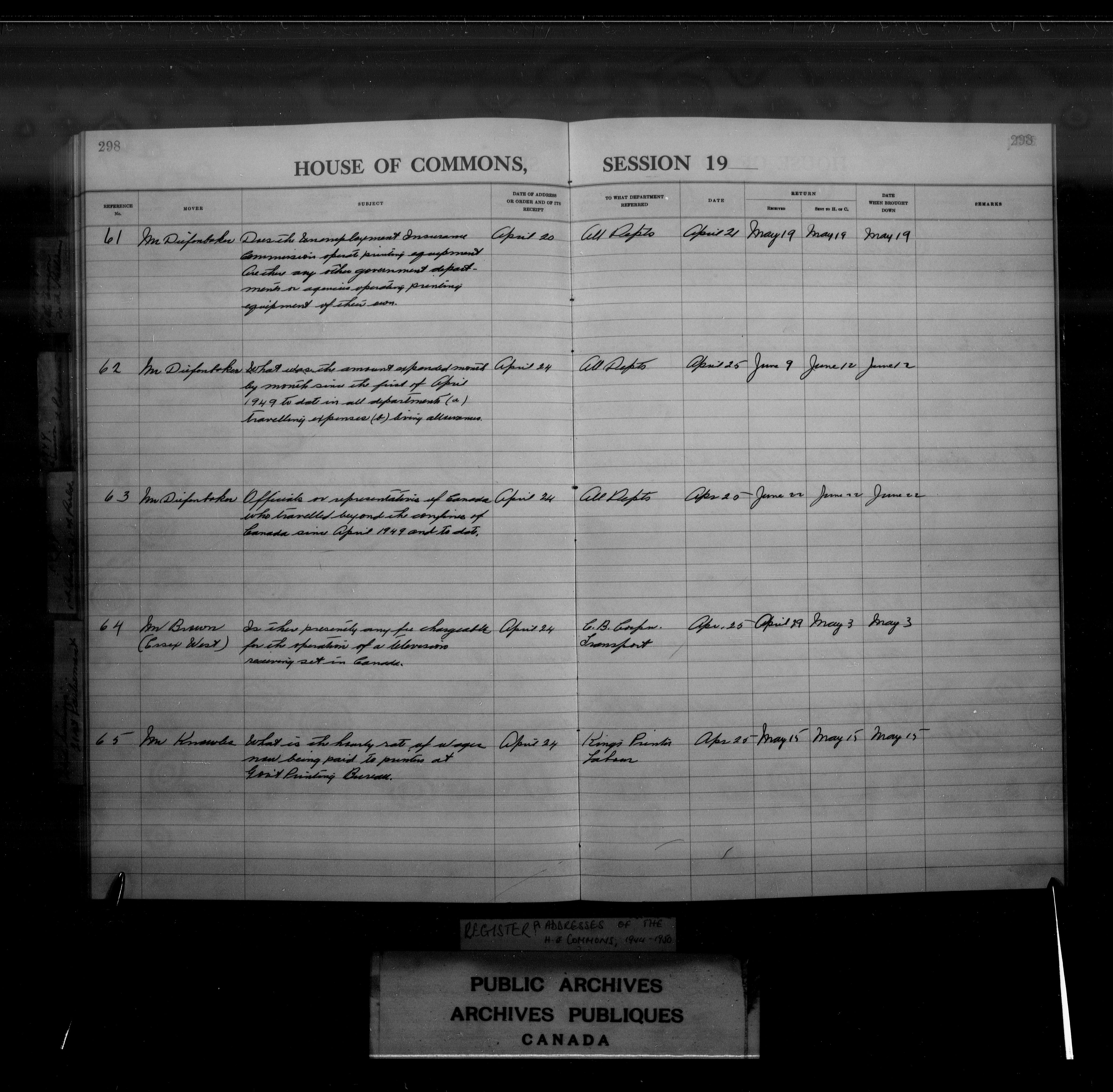 Orders and addresses of the House of Commons and Senate - 3981