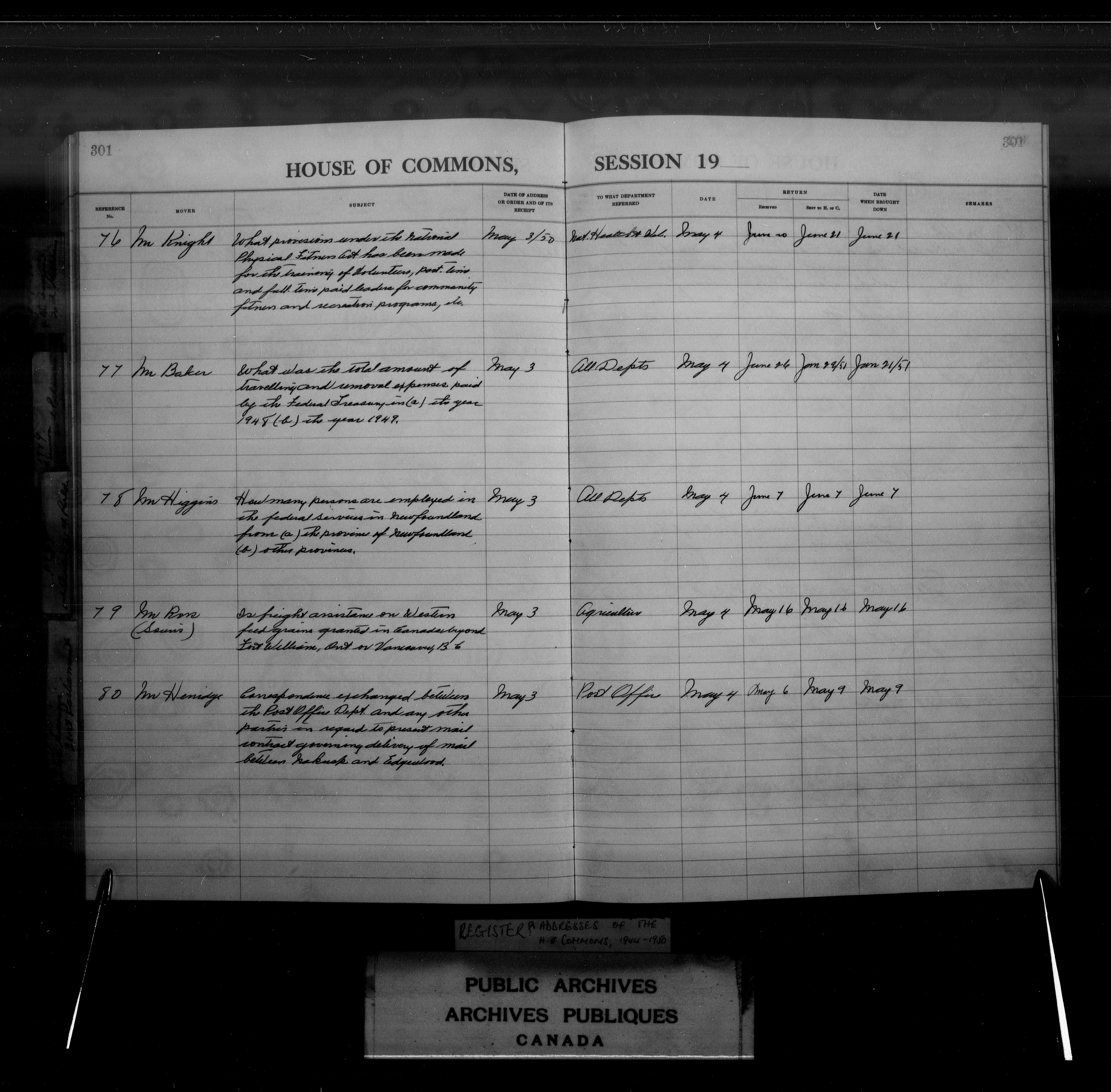 Orders and addresses of the House of Commons and Senate - 3981