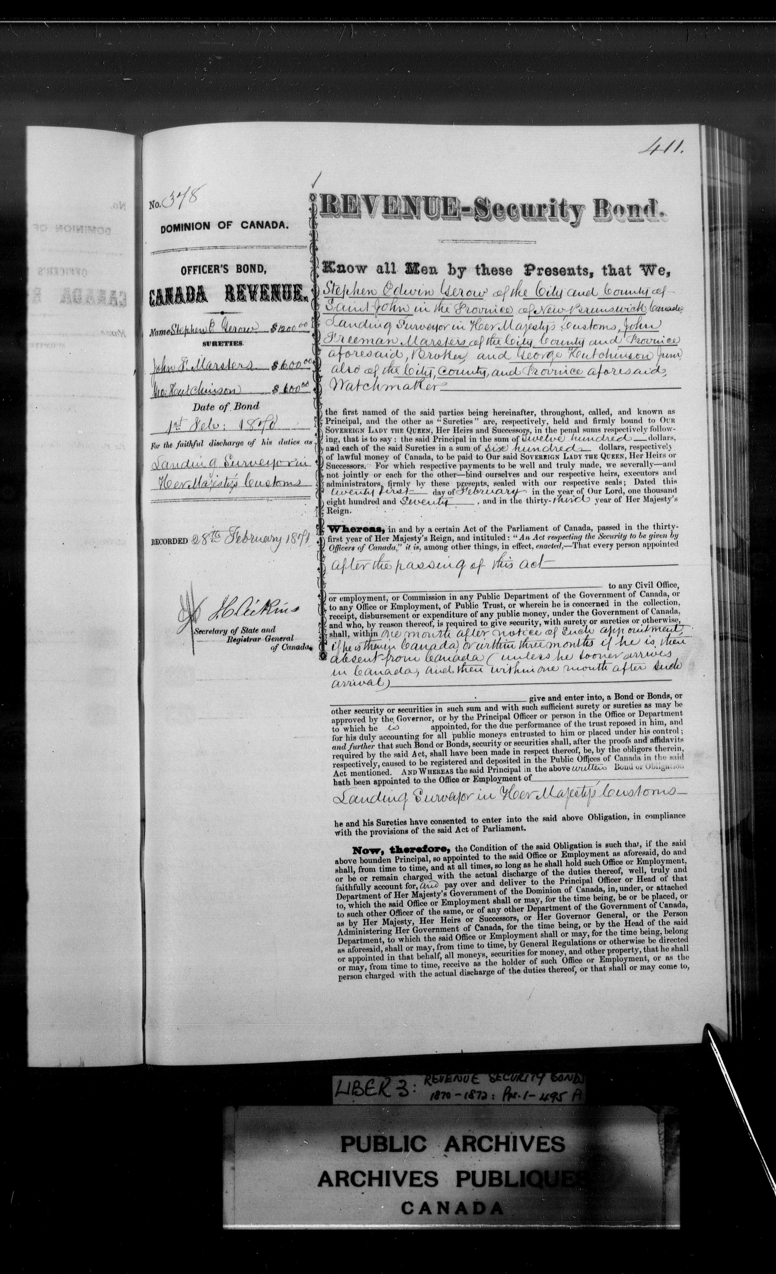 Bonds and securities Upper and Lower Canada, Province of Canada, and Canada - 3985