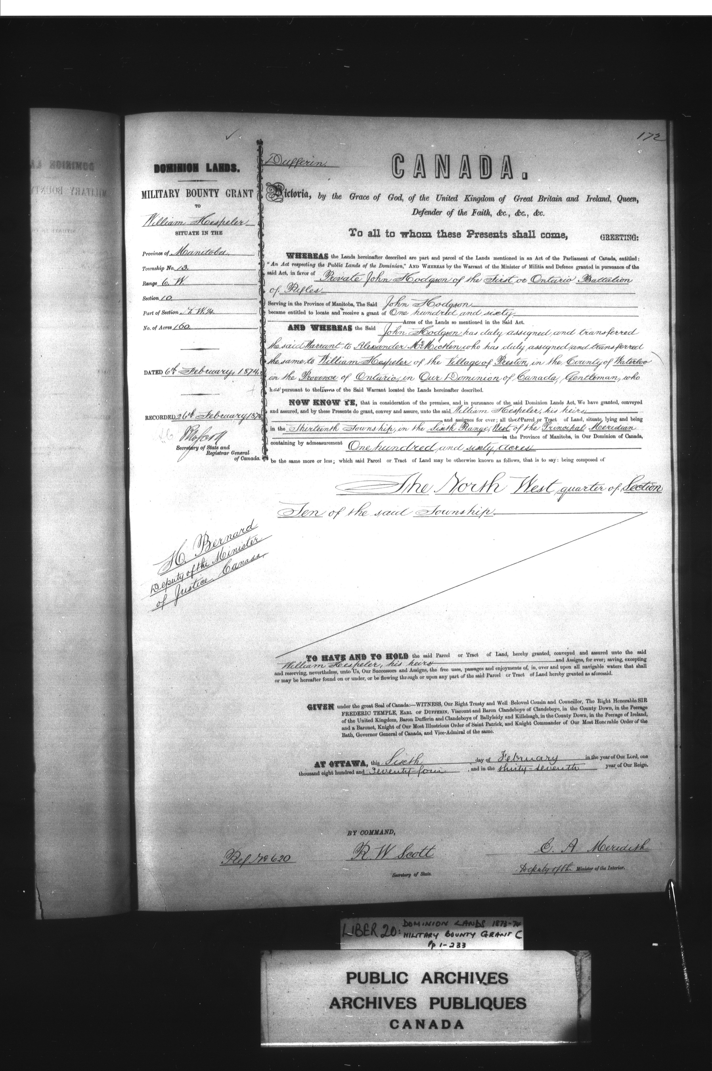 Miscellaneous registers Province of Canada and Canada, 1850-1953 - 3988