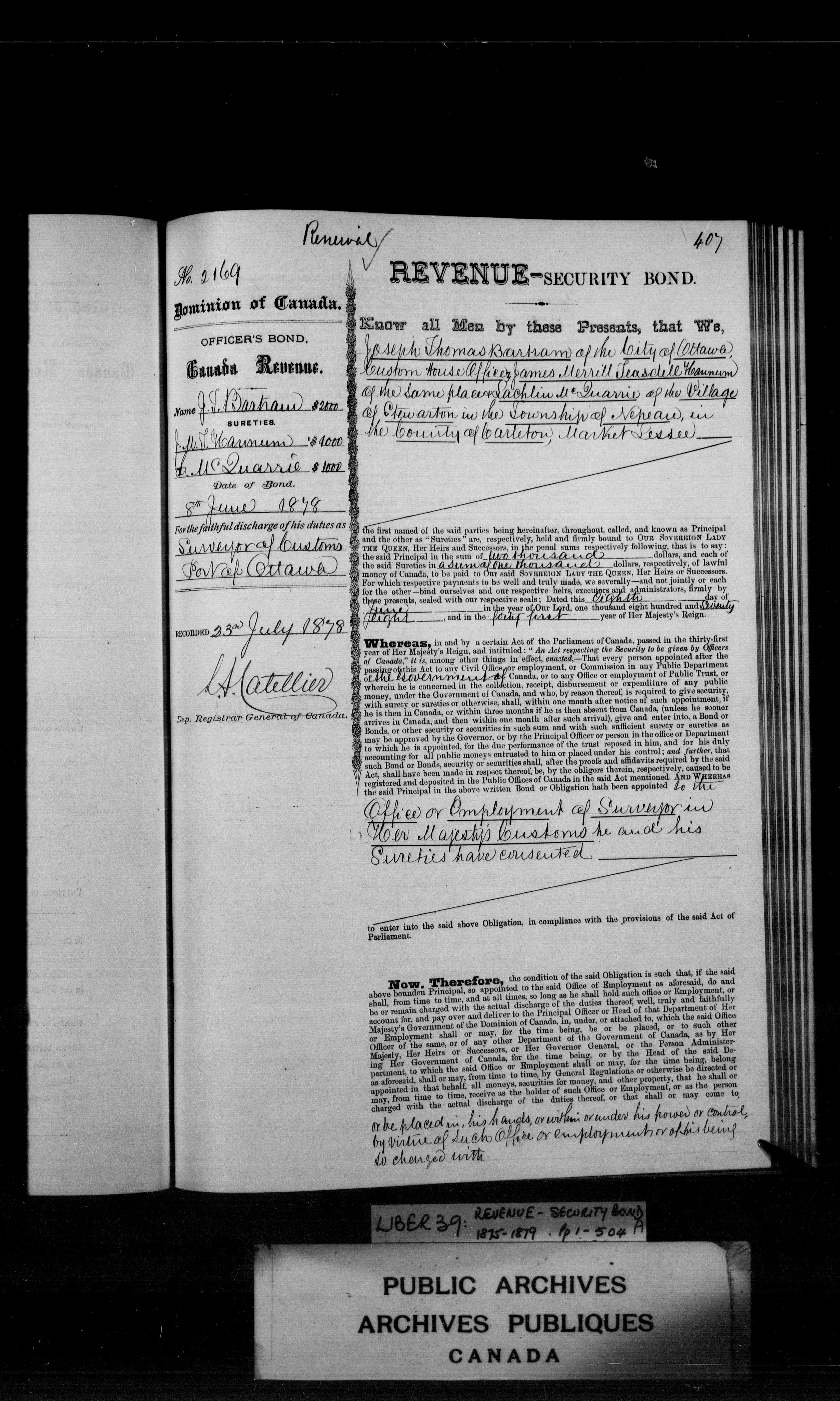 Bonds and securities Upper and Lower Canada, Province of Canada, and Canada : C-3994