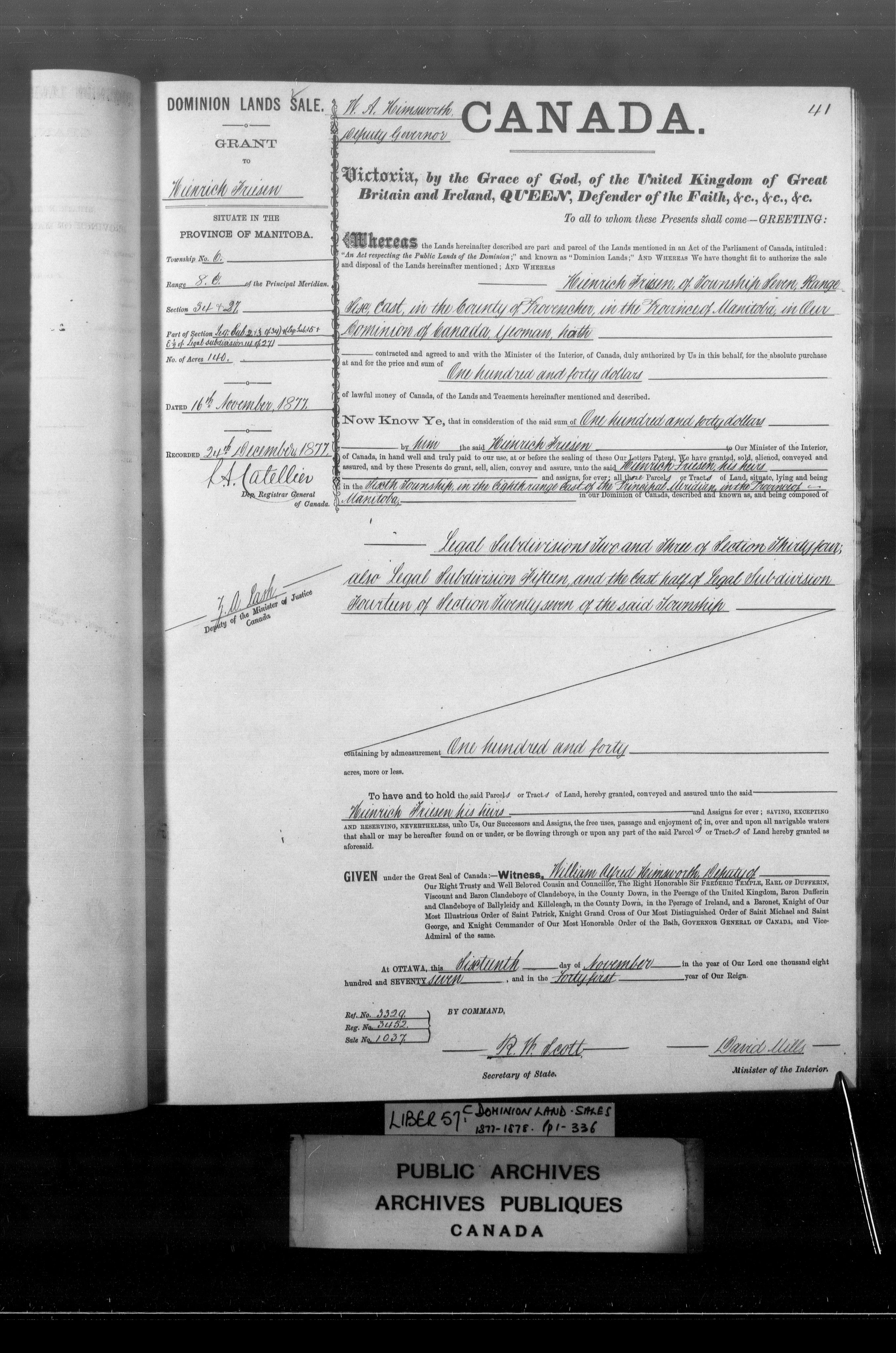 Land documents concerning Quebec, Upper and Lower Canada, Canada East and Canada West and Canada - 3999