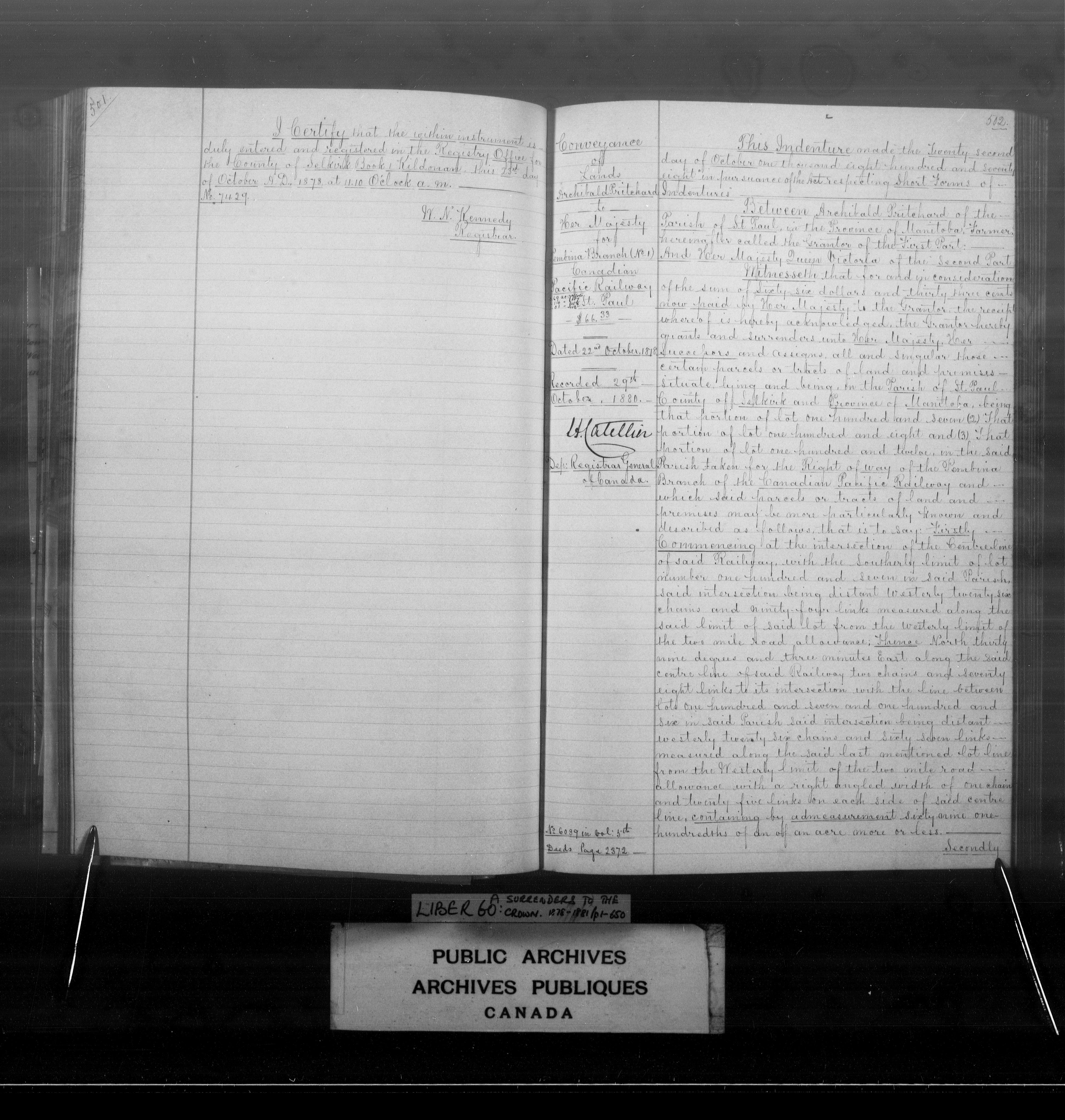 Land documents concerning Quebec, Upper and Lower Canada, Canada East and Canada West and Canada - 4000