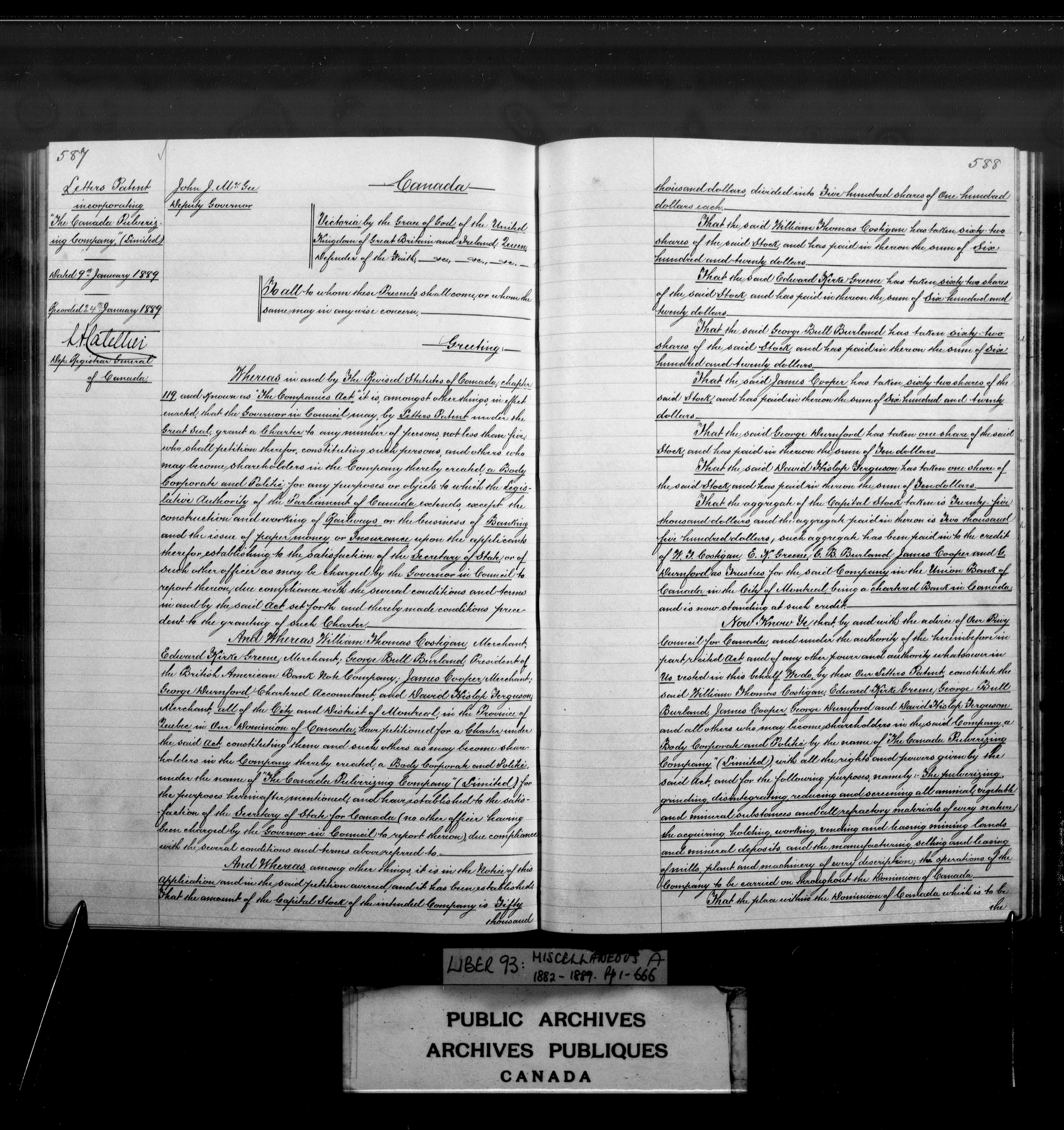 Miscellaneous registers Province of Canada and Canada, 1850-1953 - 4012