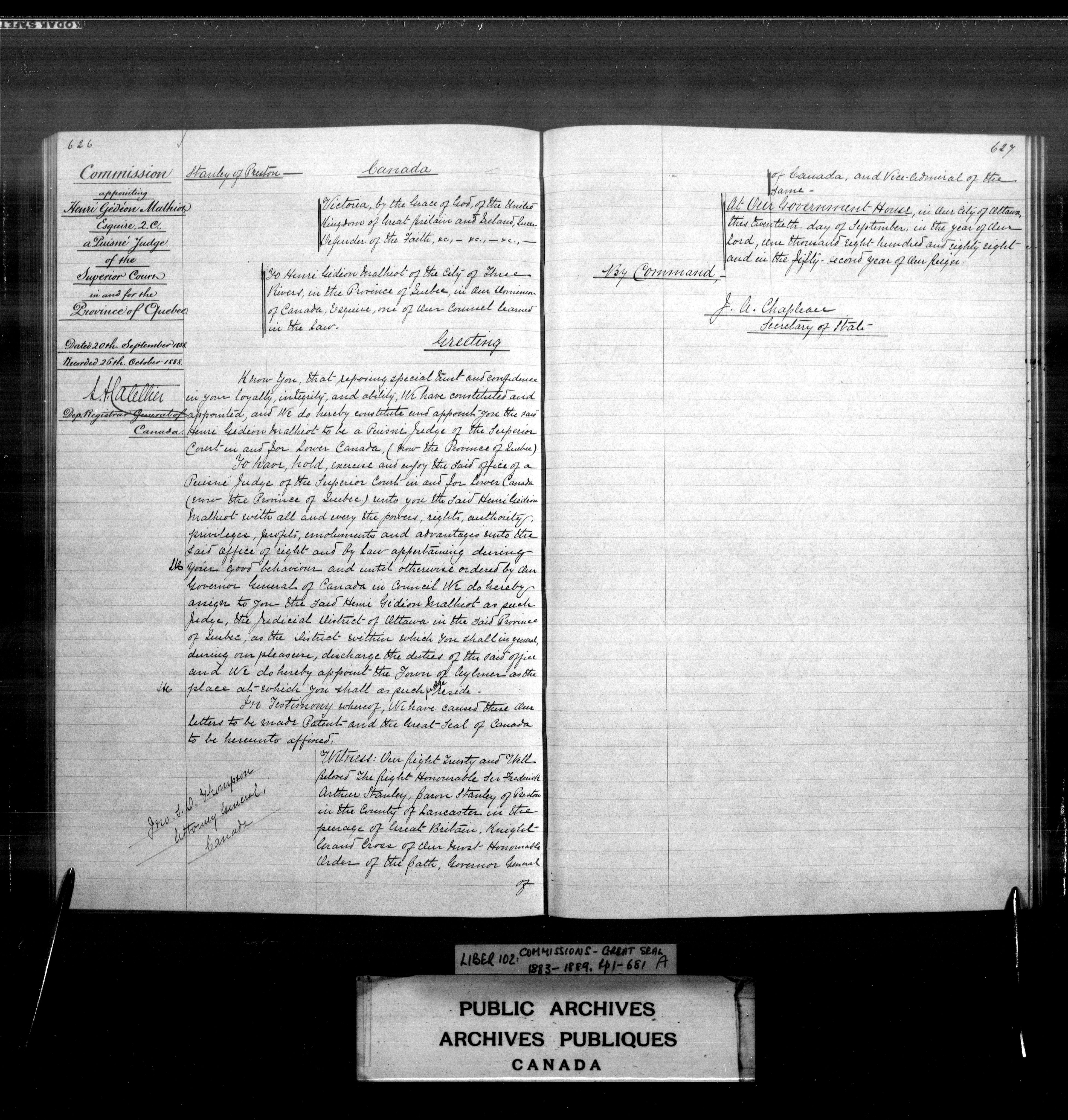 Commissions from Quebec, Upper and Lower Canada, Province of Canada and Canada - 4016