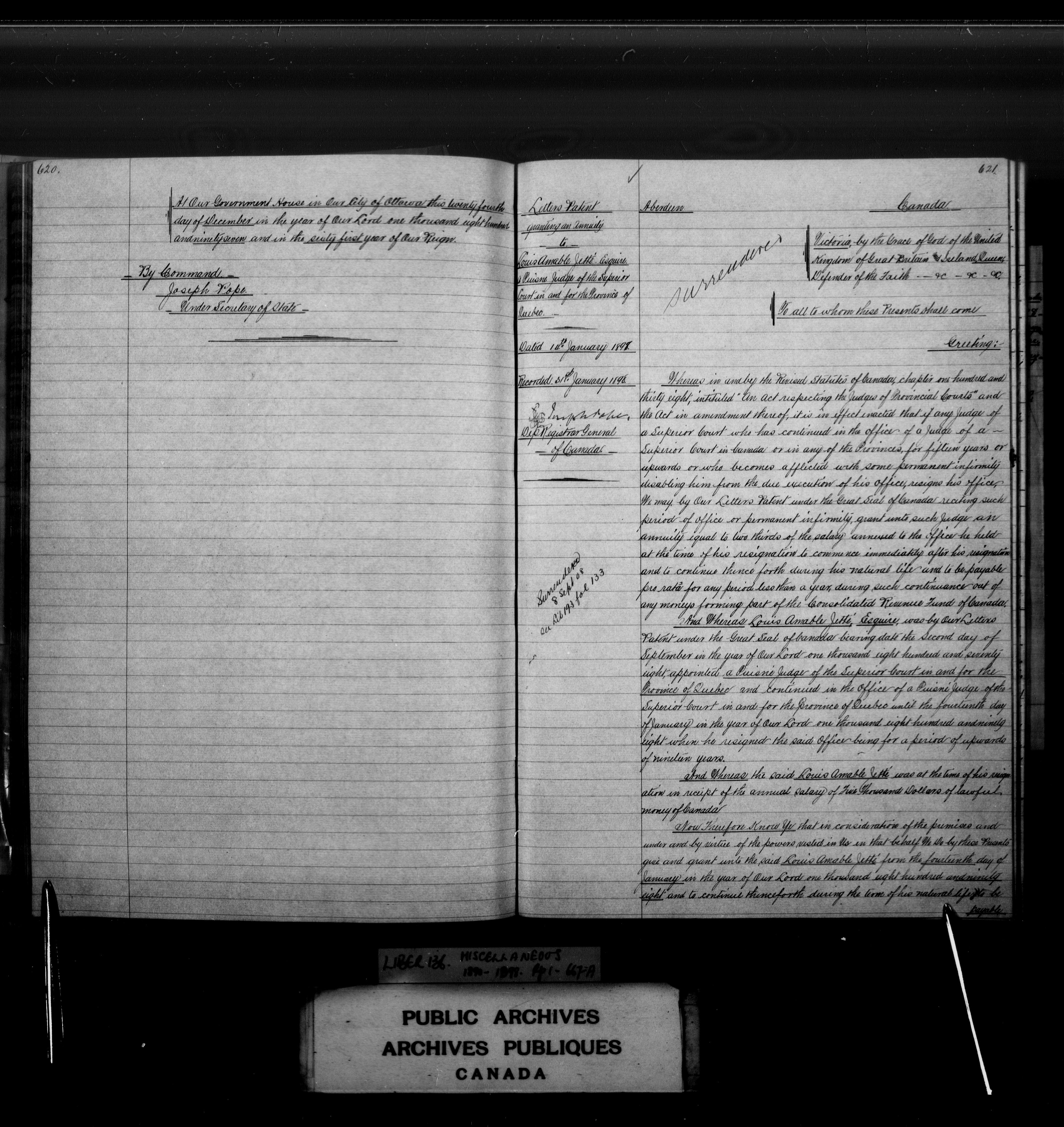 Miscellaneous registers Province of Canada and Canada, 1850-1953 - 4028