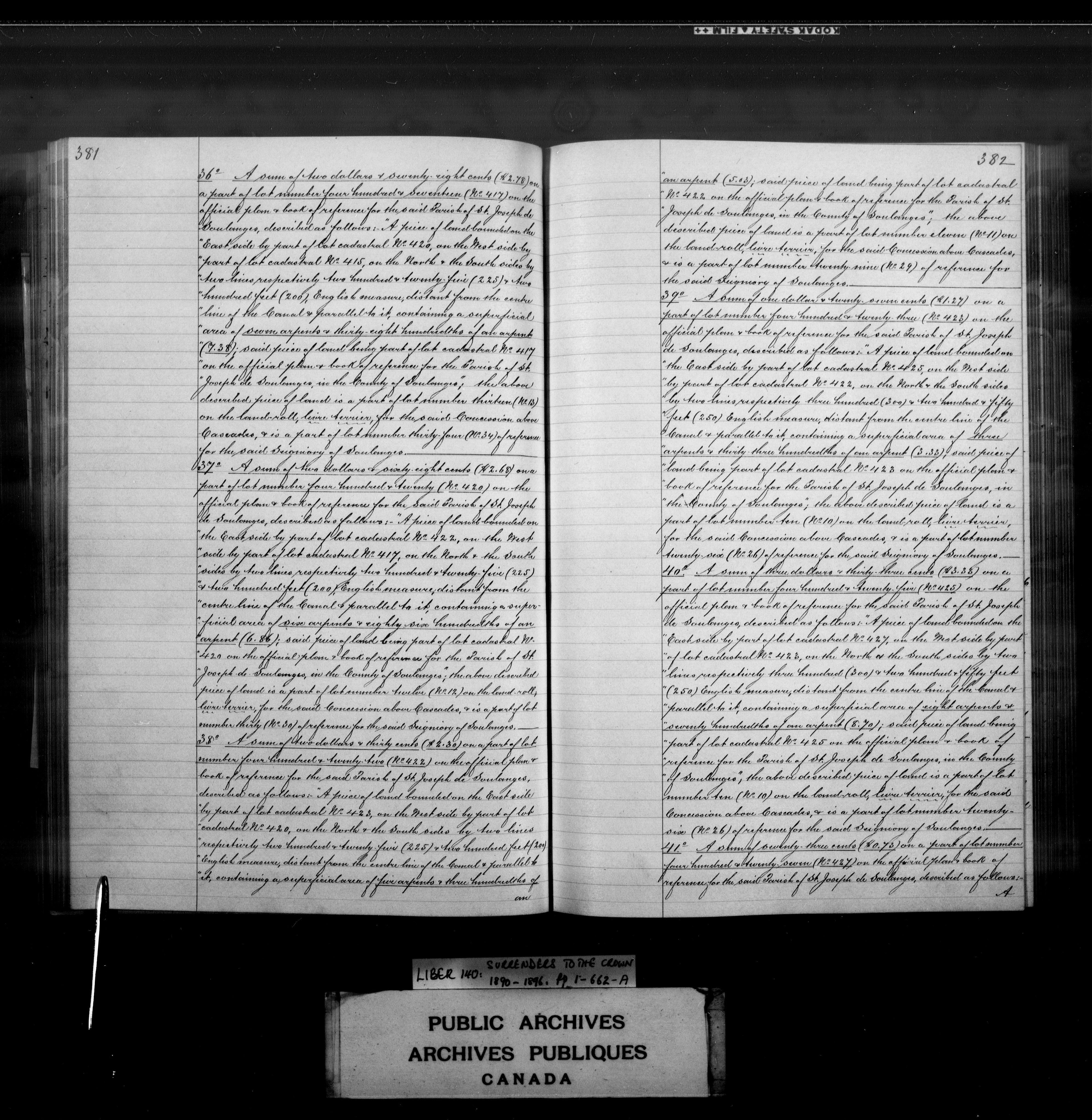 Land documents concerning Quebec, Upper and Lower Canada, Canada East and Canada West and Canada - 4029