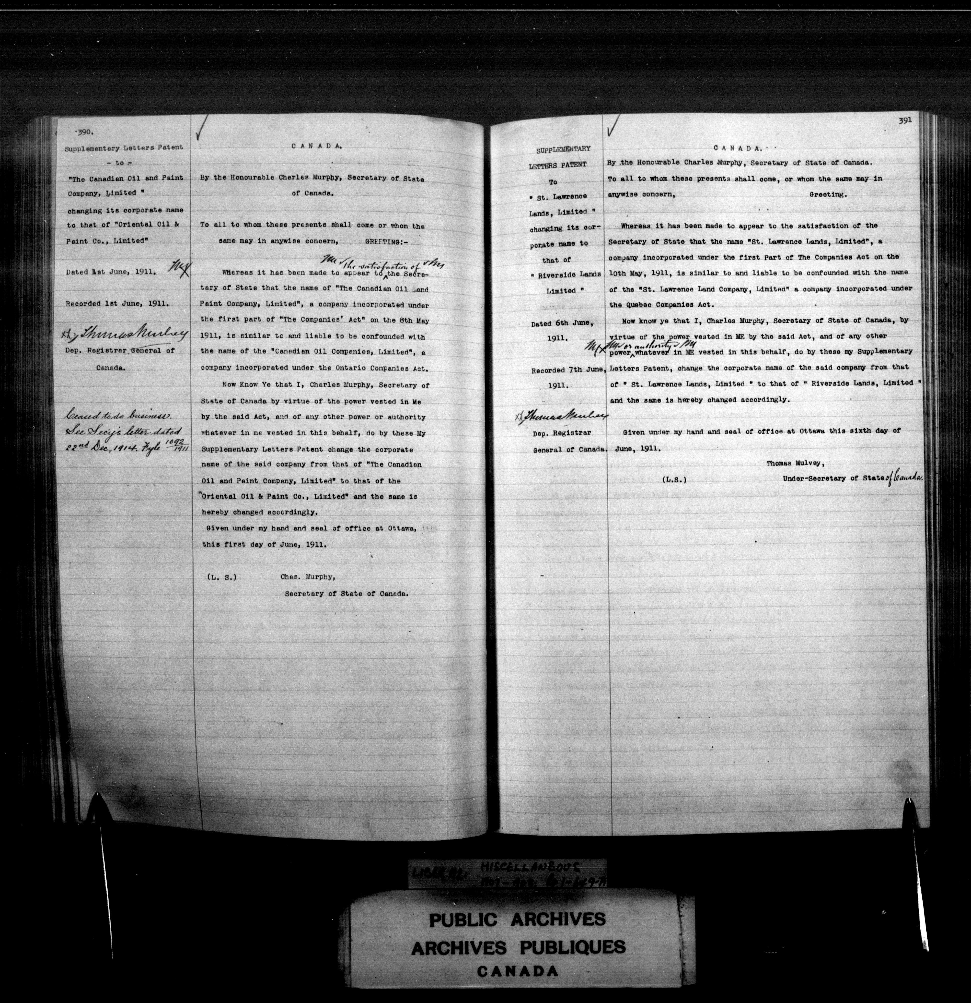 Miscellaneous registers Province of Canada and Canada, 1850-1953 - 4047