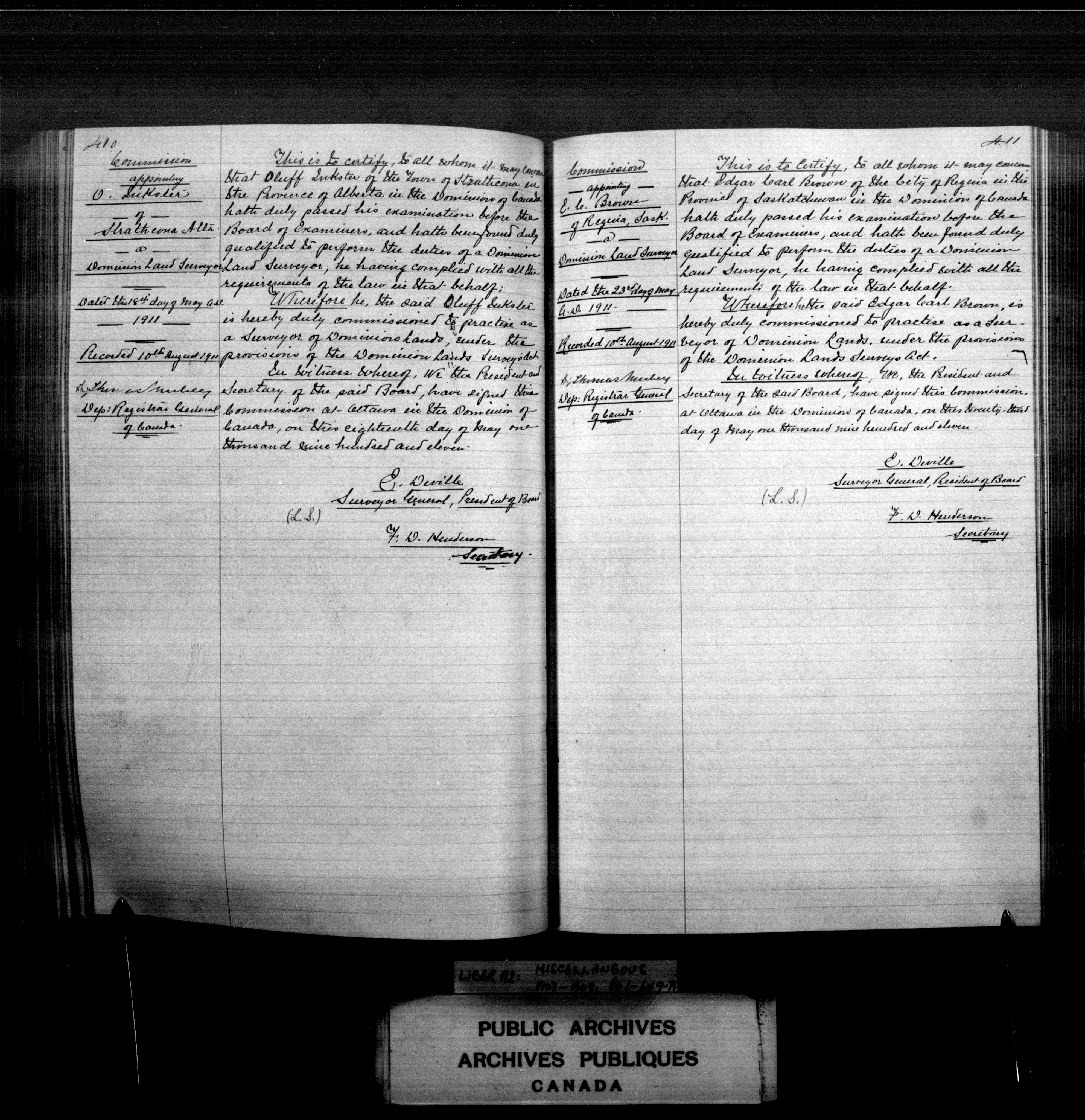 Miscellaneous registers Province of Canada and Canada, 1850-1953 - 4047