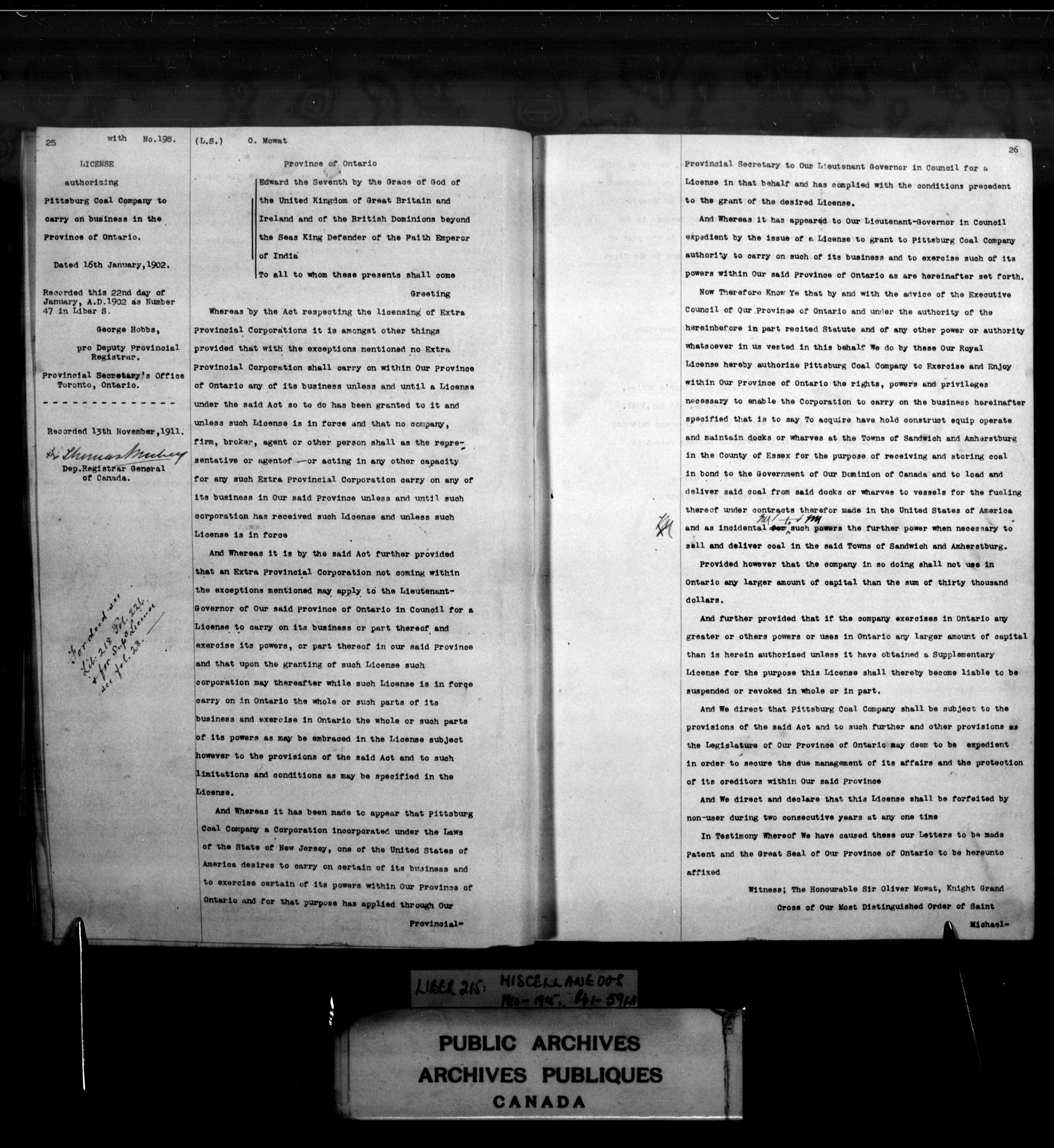 Miscellaneous registers Province of Canada and Canada, 1850-1953 - 4055