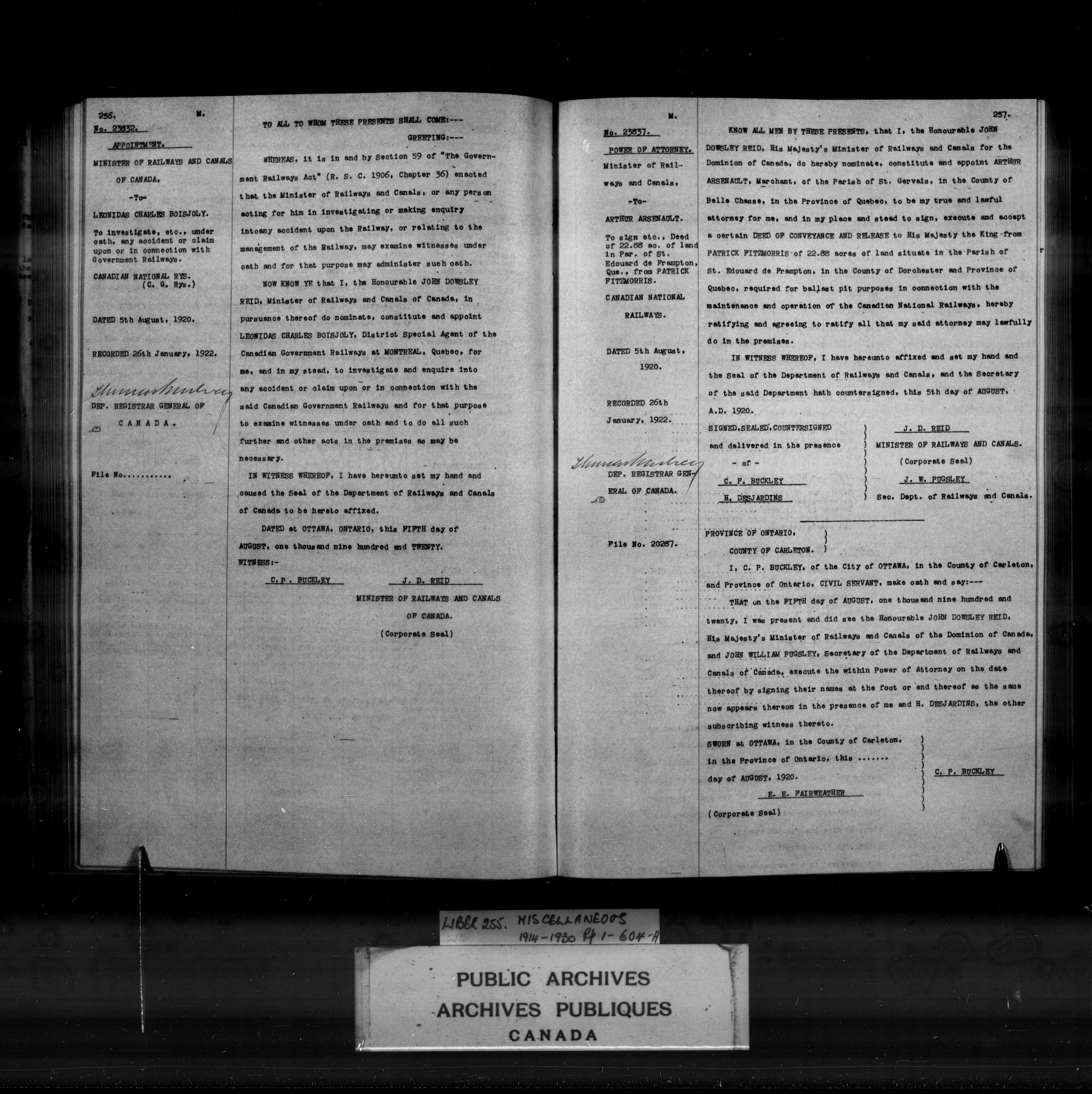 Miscellaneous registers Province of Canada and Canada, 1850-1953 - 4067