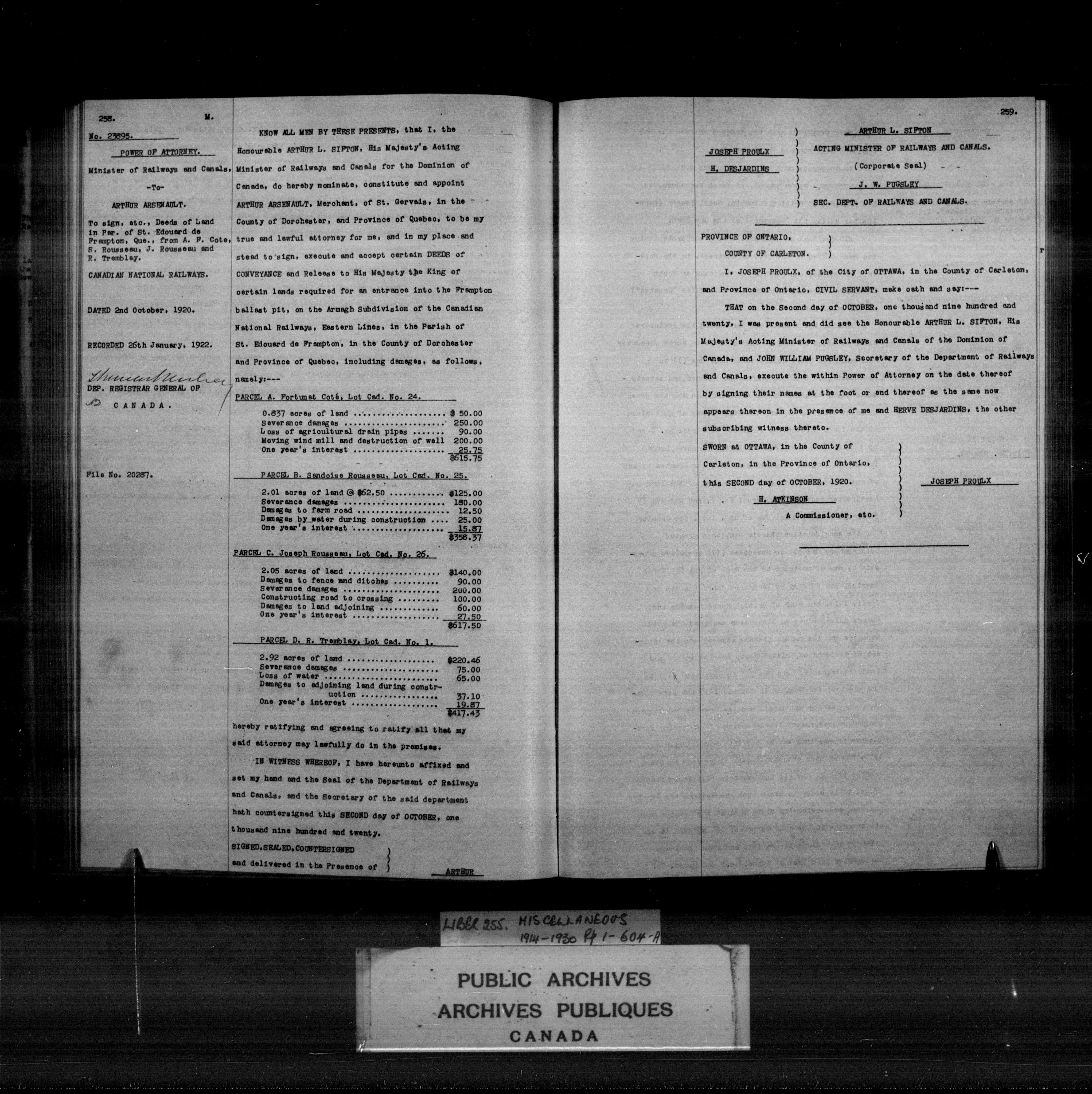 Miscellaneous registers Province of Canada and Canada, 1850-1953 - 4067