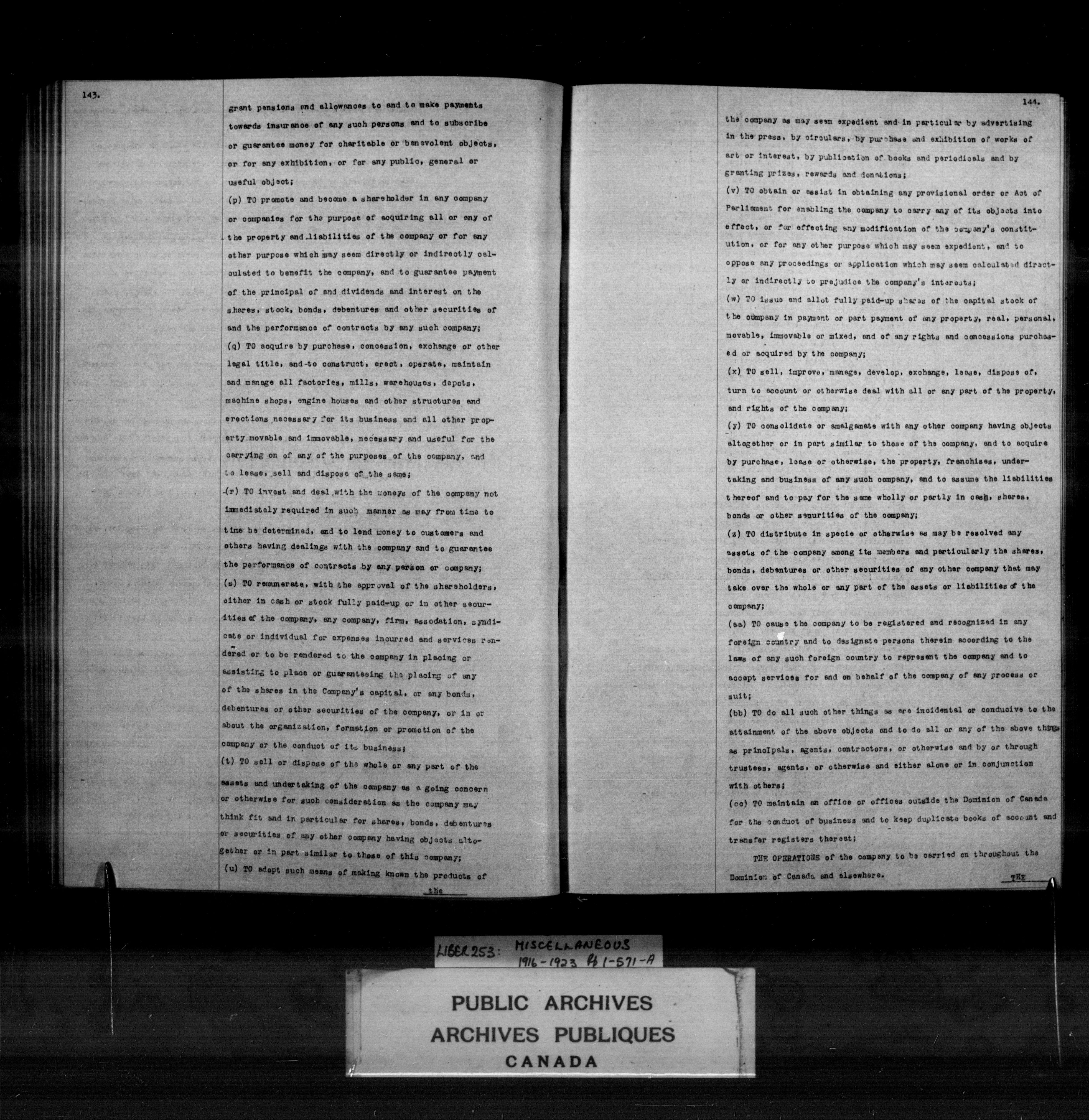 Miscellaneous registers Province of Canada and Canada, 1850-1953 - 4067