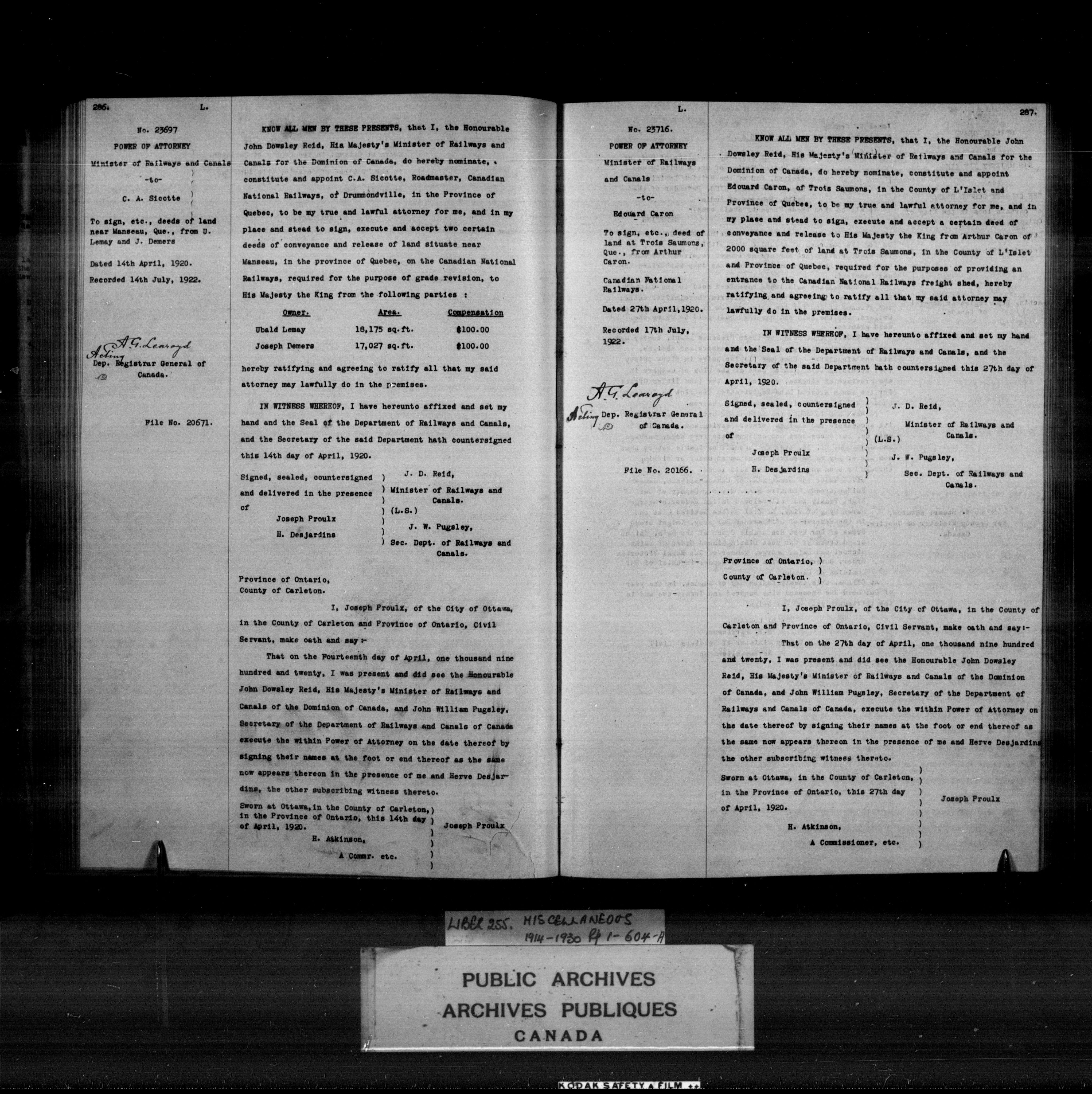 Miscellaneous registers Province of Canada and Canada, 1850-1953 - 4067